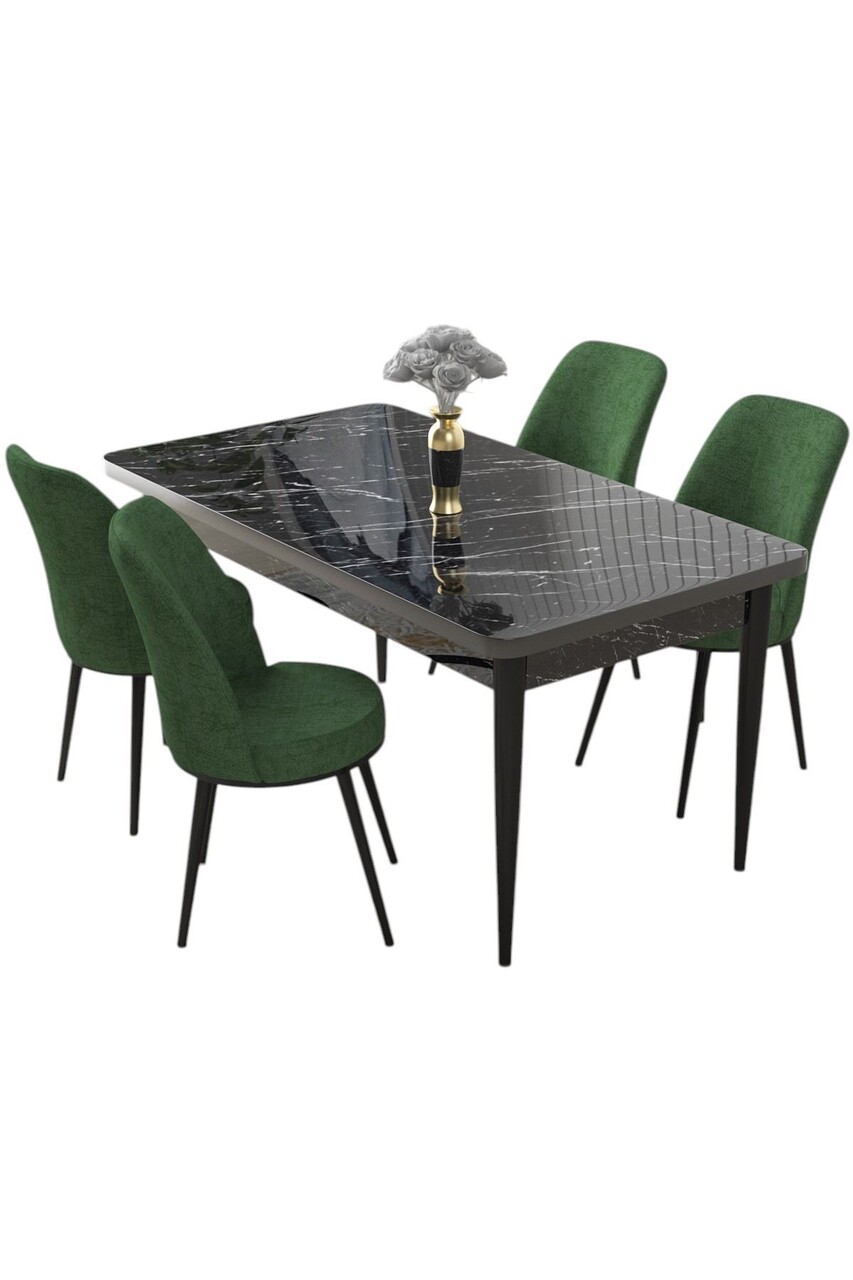 Set masă și scaune (5 bucăți), Hanah Home, Nil, Marmură neagră / Kaki