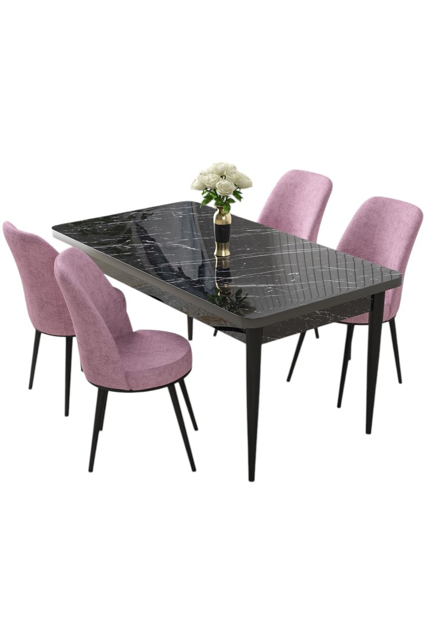 Set masă și scaune (5 bucăți), Hanah Home, Nil, Marmură neagră / Roz