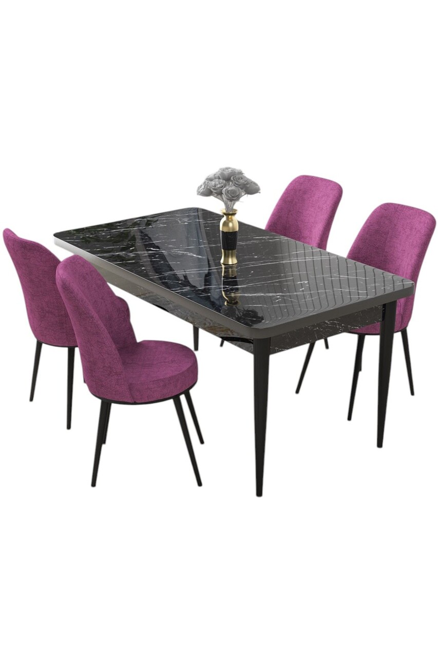 Set masă și scaune (5 bucăți), Hanah Home, Nil, Marmură neagră / Violet