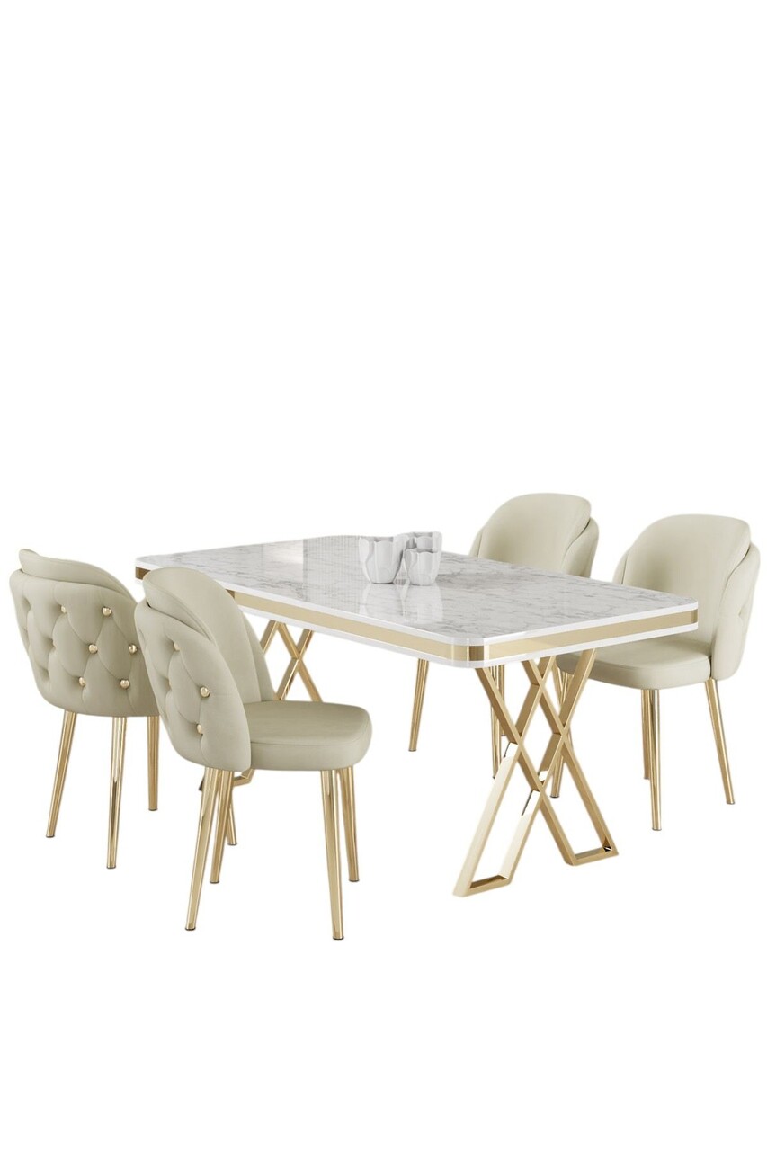 Set masă și scaune (5 bucăți), Hanah Home, Rigel, Alb / Auriu / Crem