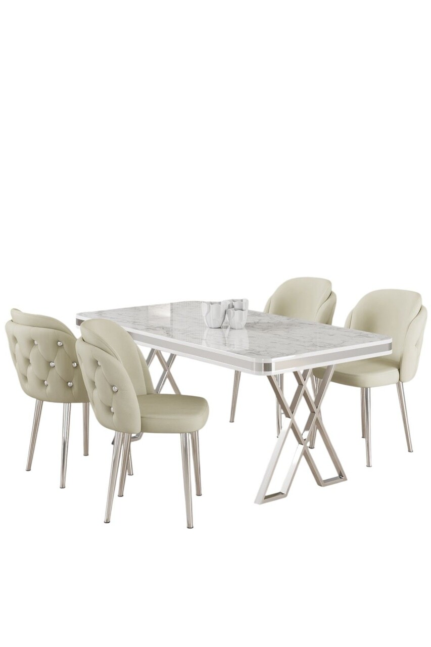 Set masă și scaune (5 bucăți), Hanah Home, Rigel, Alb / Crom / Crem