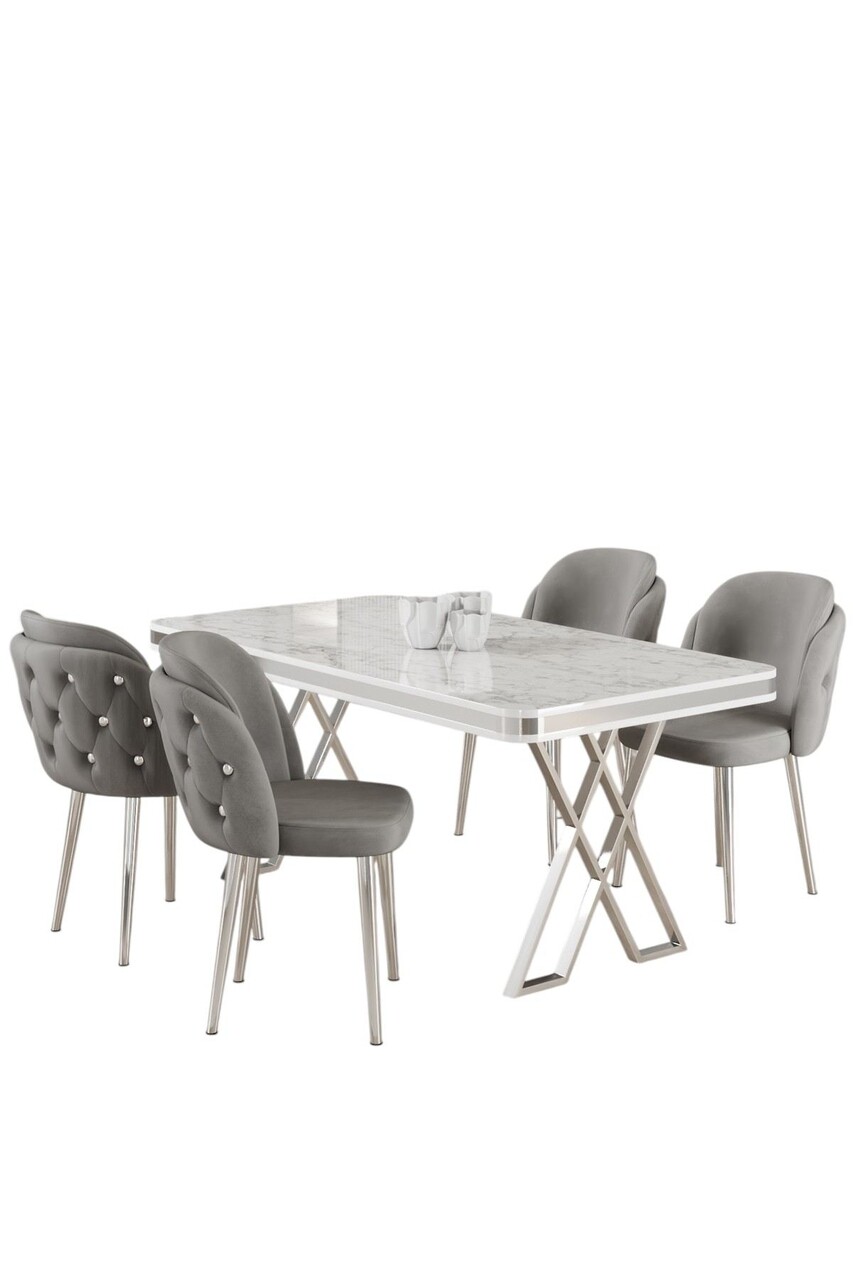 Set masă și scaune (5 bucăți), Hanah Home, Rigel, Alb / Crom / Gri