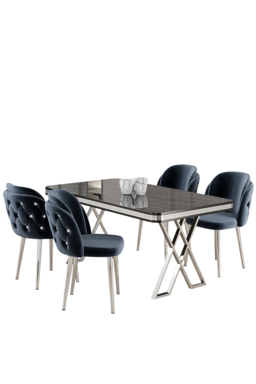 Set masă și scaune (5 bucăți), Hanah Home, Rigel, Marmură neagră / Crom / Antracit