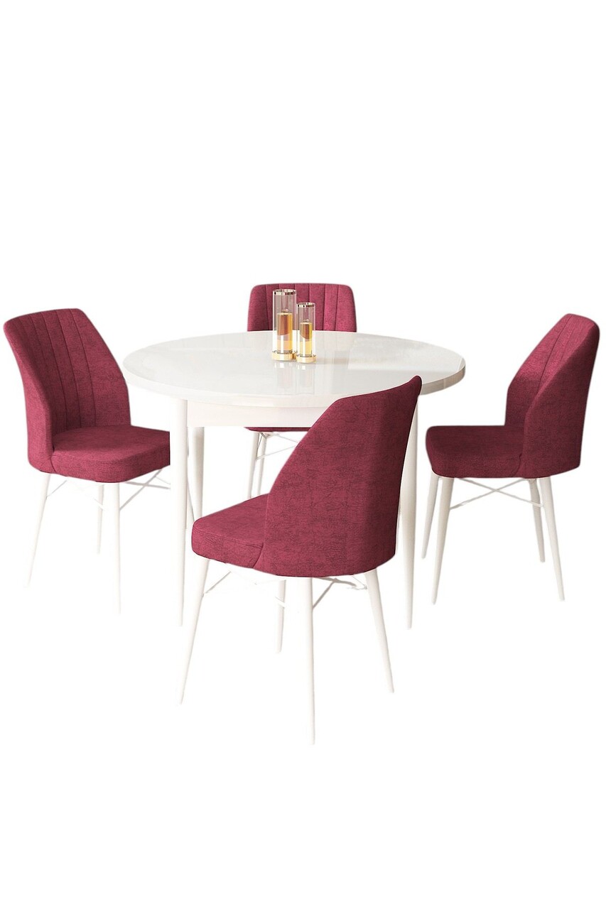 Set masă și scaune (5 bucăți), Hanah Home, Rox, Alb / Burgundia