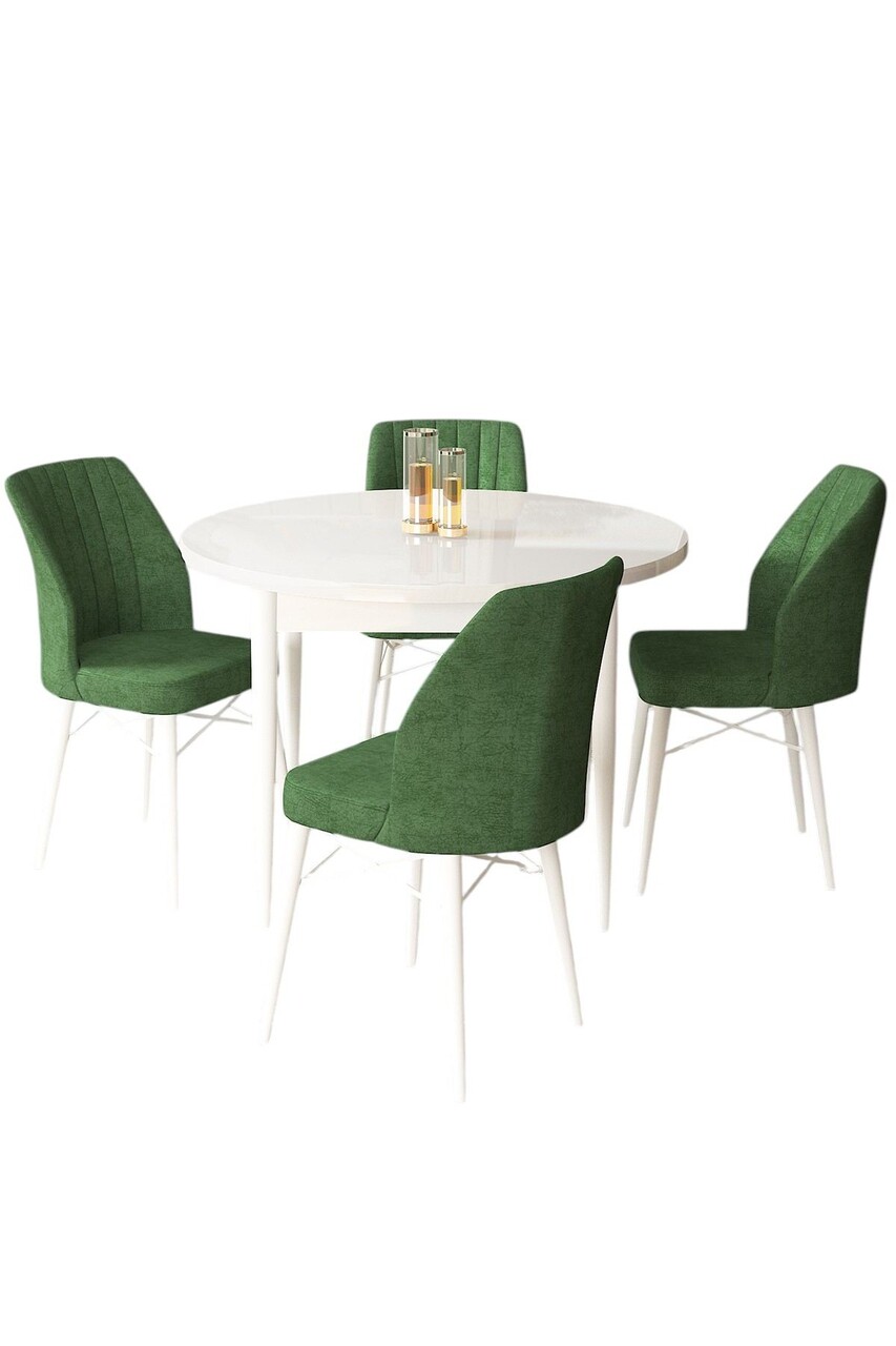 Set masă și scaune (5 bucăți), Hanah Home, Rox, Alb / Kaki
