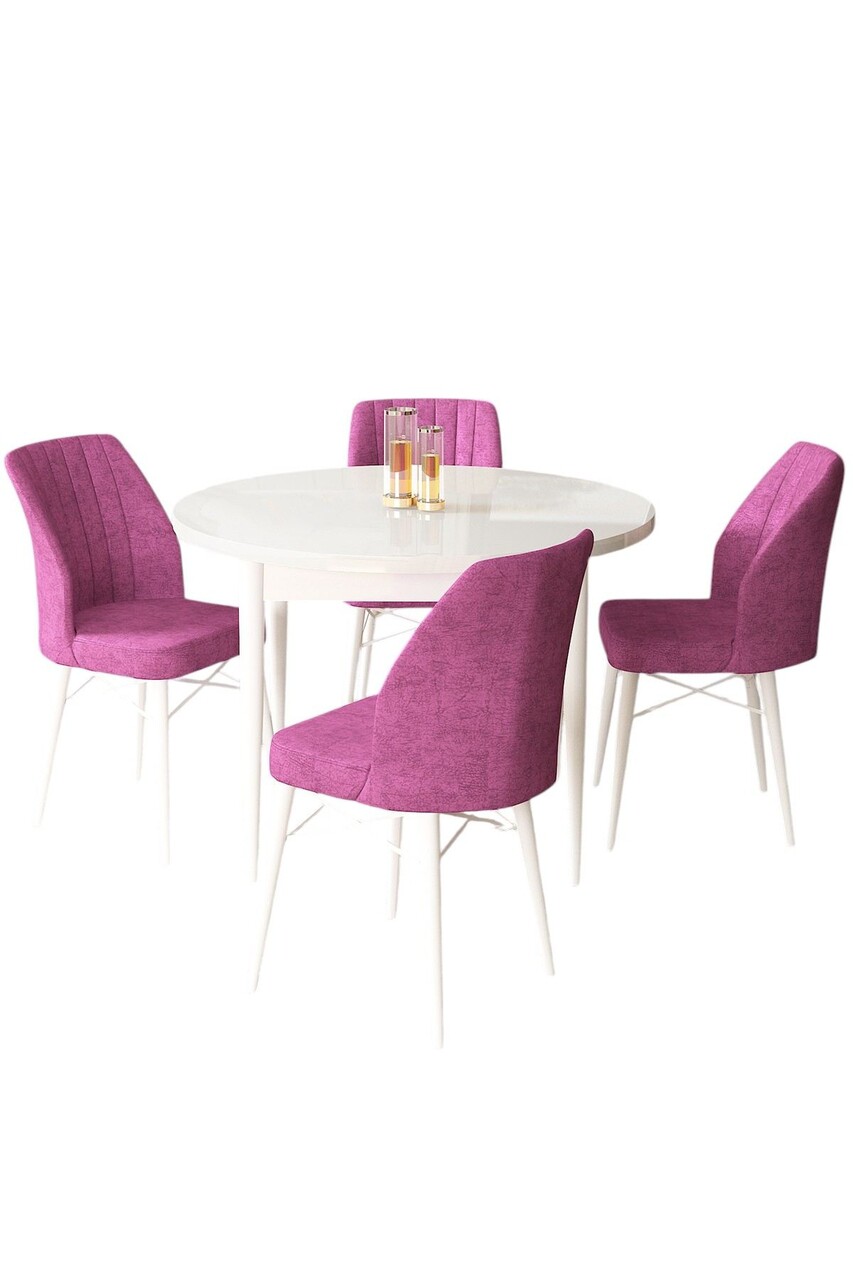 Set masă și scaune (5 bucăți), Hanah Home, Rox, Alb/Mov