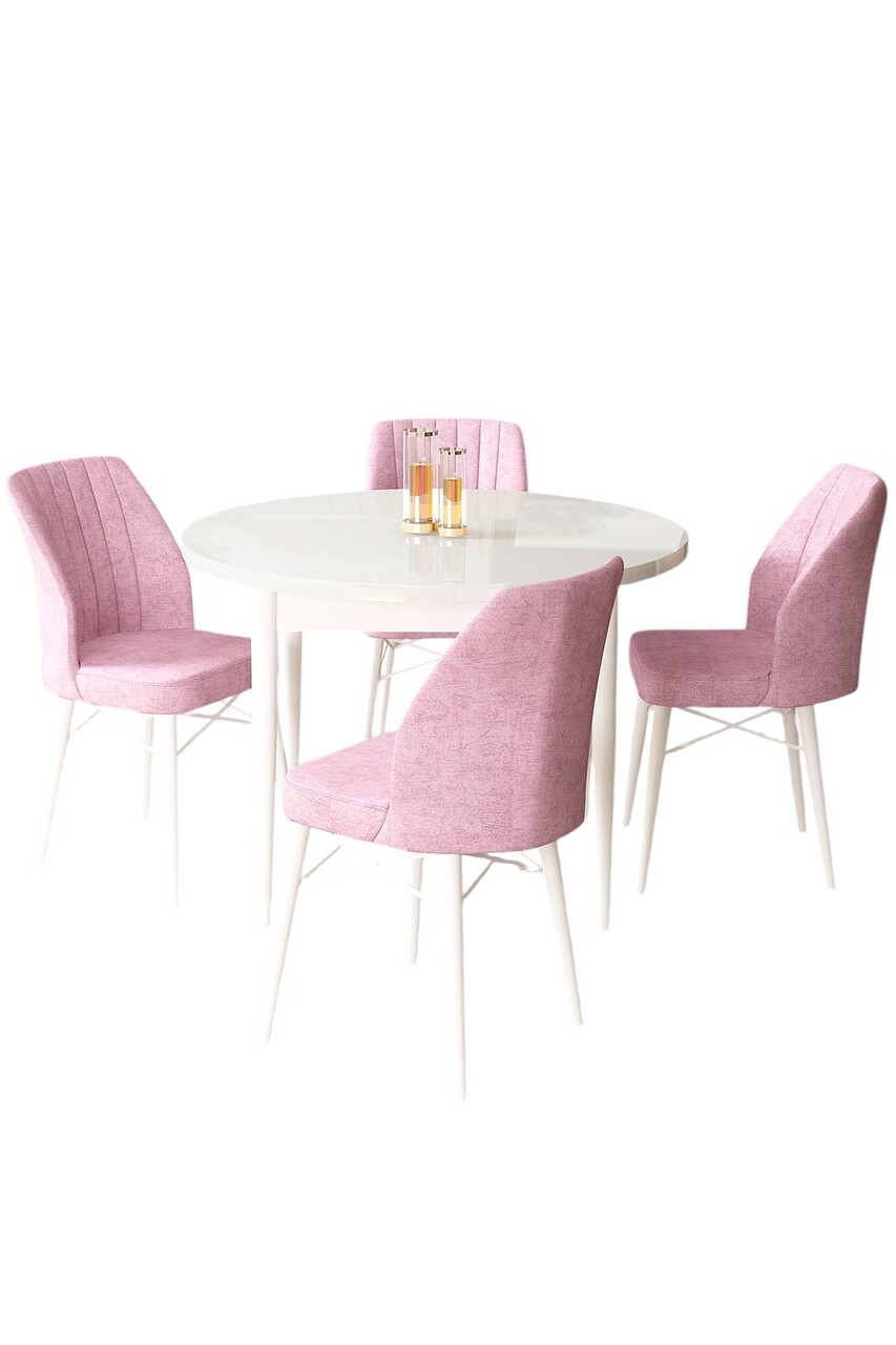 Set masă și scaune (5 bucăți), Hanah Home, Rox, Alb/Roz