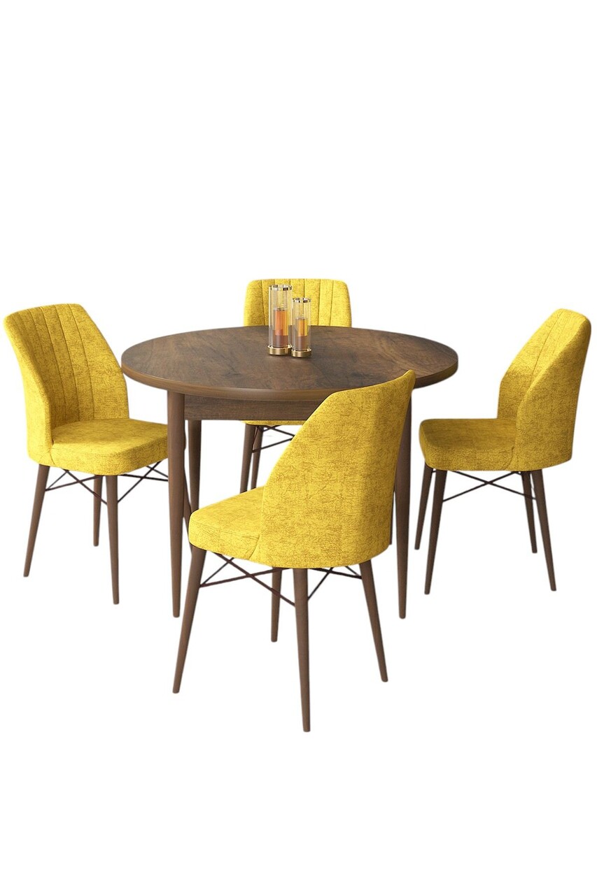 Set masă și scaune (5 bucăți), Hanah Home, Rox, Baroc / Muștar