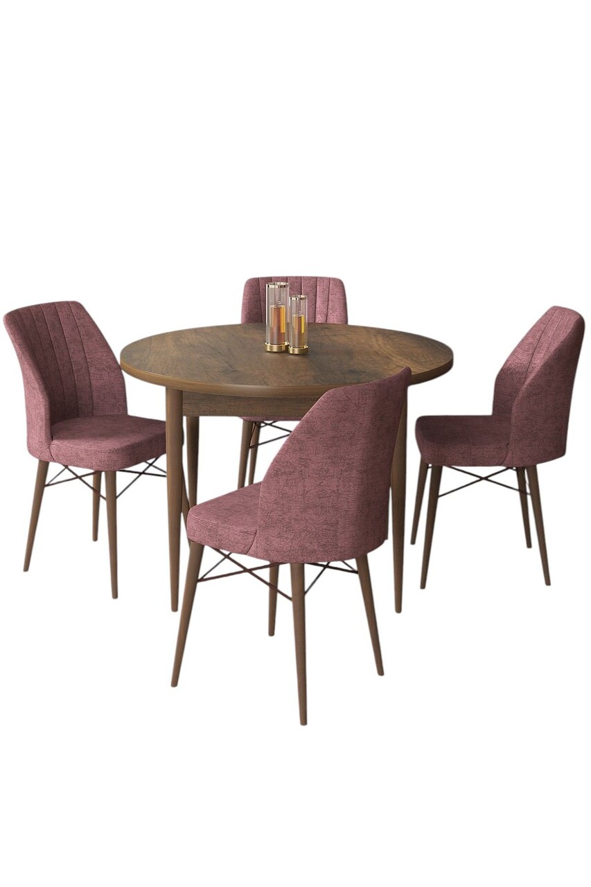 Set masă și scaune (5 bucăți), Hanah Home, Rox, Baroc / Roz Păfuit