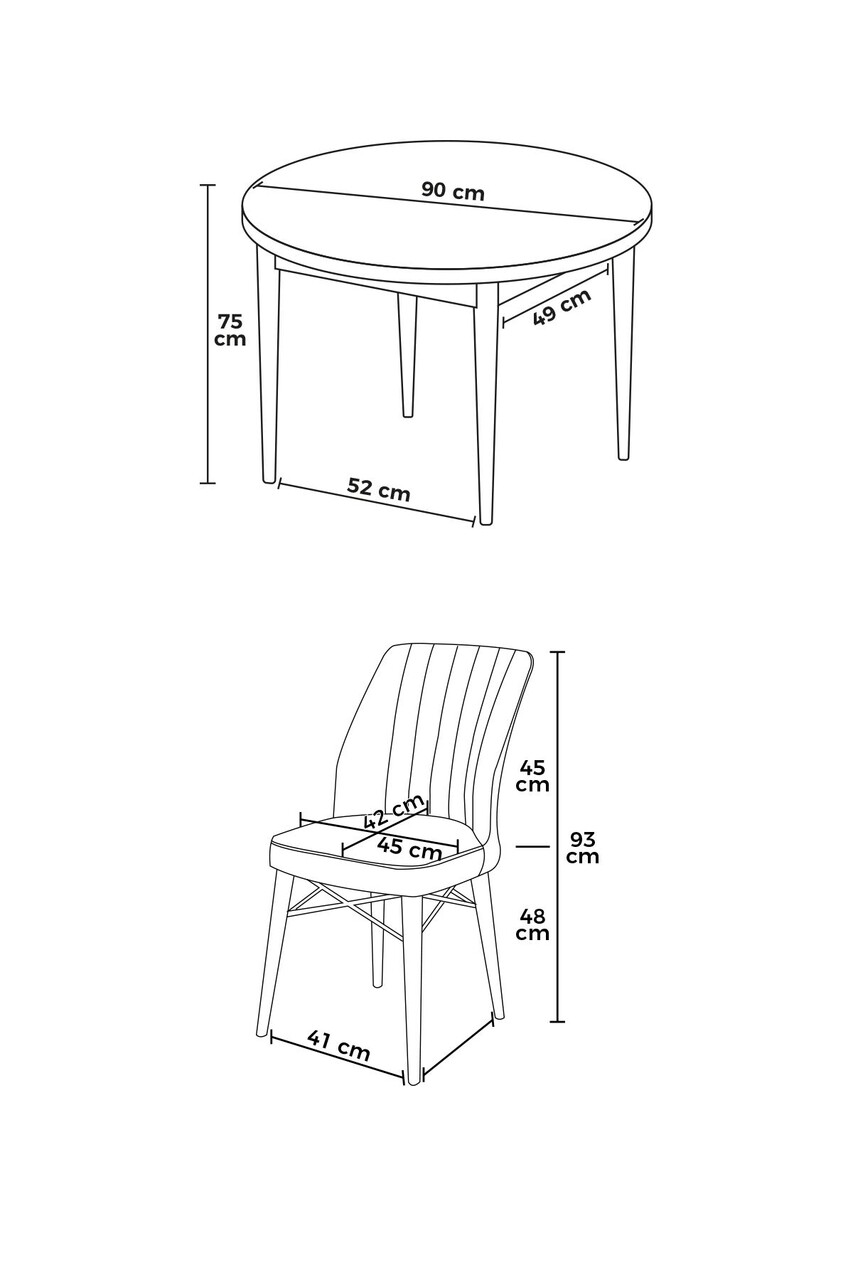 Scaun: Fără: 45 cm Inaltime: 93 cm Adancime: 42 cm (4 piese)