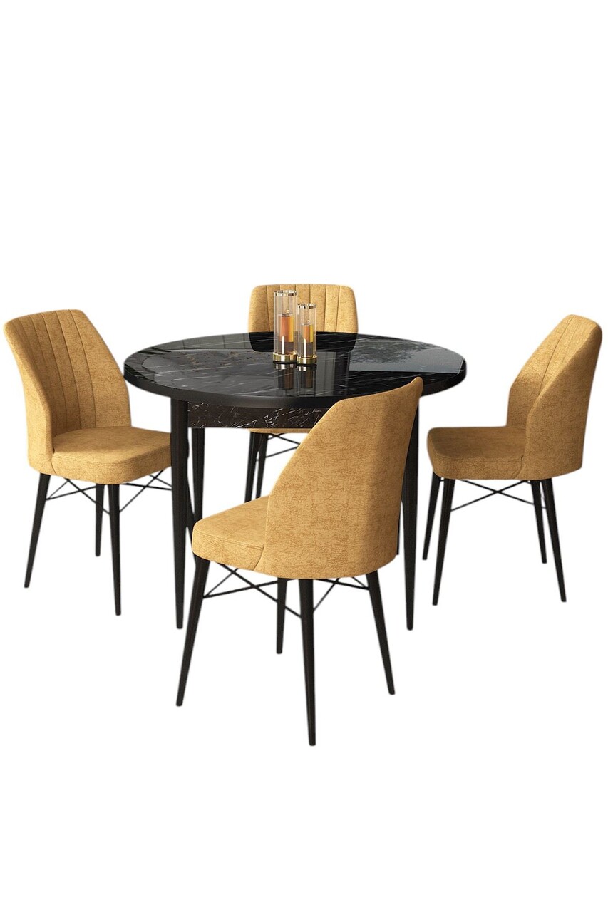 Set masă și scaune (5 bucăți), Hanah Home, Rox, Marmură neagră / Cappuccino