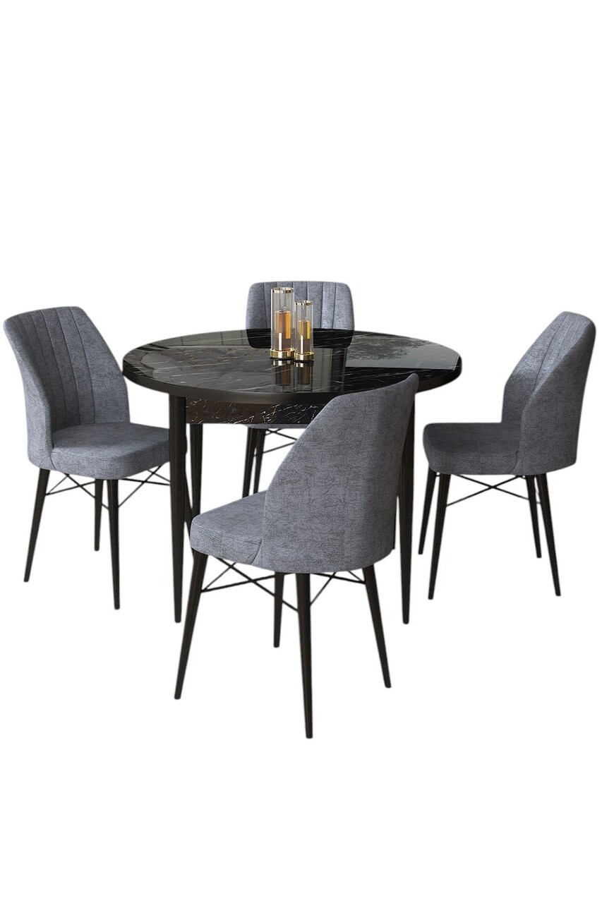 Set masă și scaune (5 bucăți), Hanah Home, Rox, Marmură neagră / Fumure
