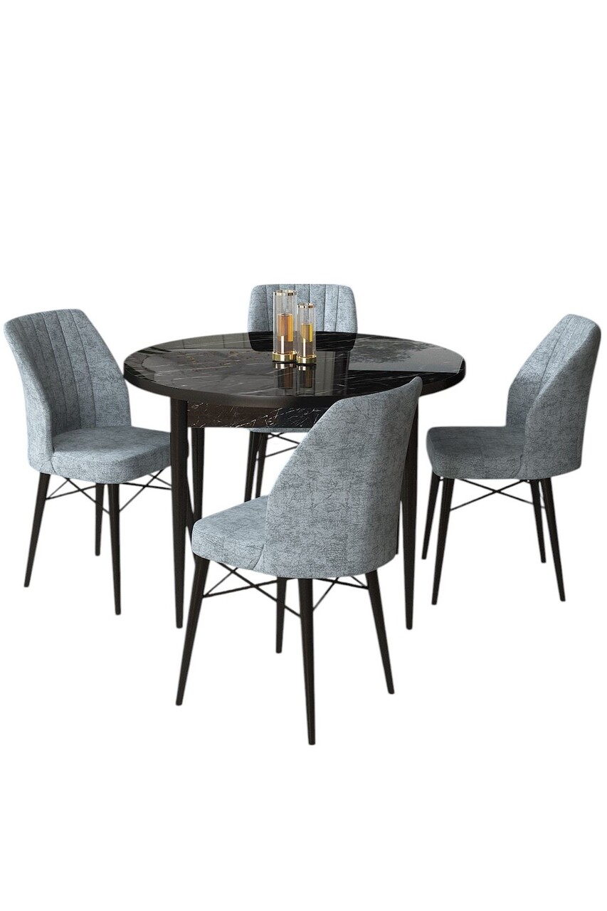 Set masă și scaune (5 bucăți), Hanah Home, Rox, Marmură neagră / Gri