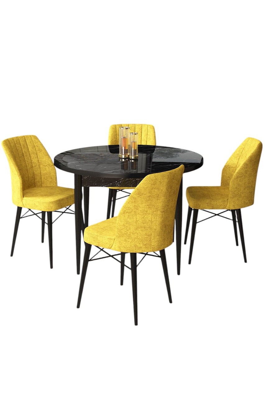 Set masă și scaune (5 bucăți), Hanah Home, Rox, Marmură neagră / Muștar