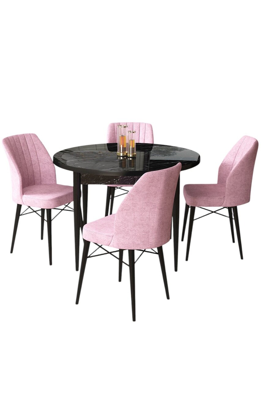 Set masă și scaune (5 bucăți), Hanah Home, Rox, Marmură neagră / Roz