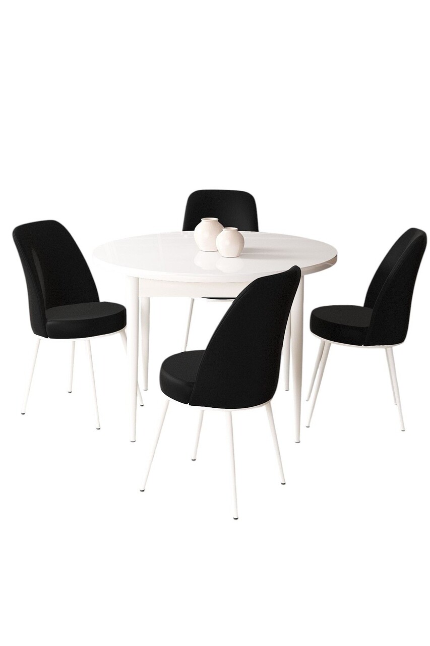 Set masă și scaune (5 bucăți), Hanah Home, Tor, Alb/Negru