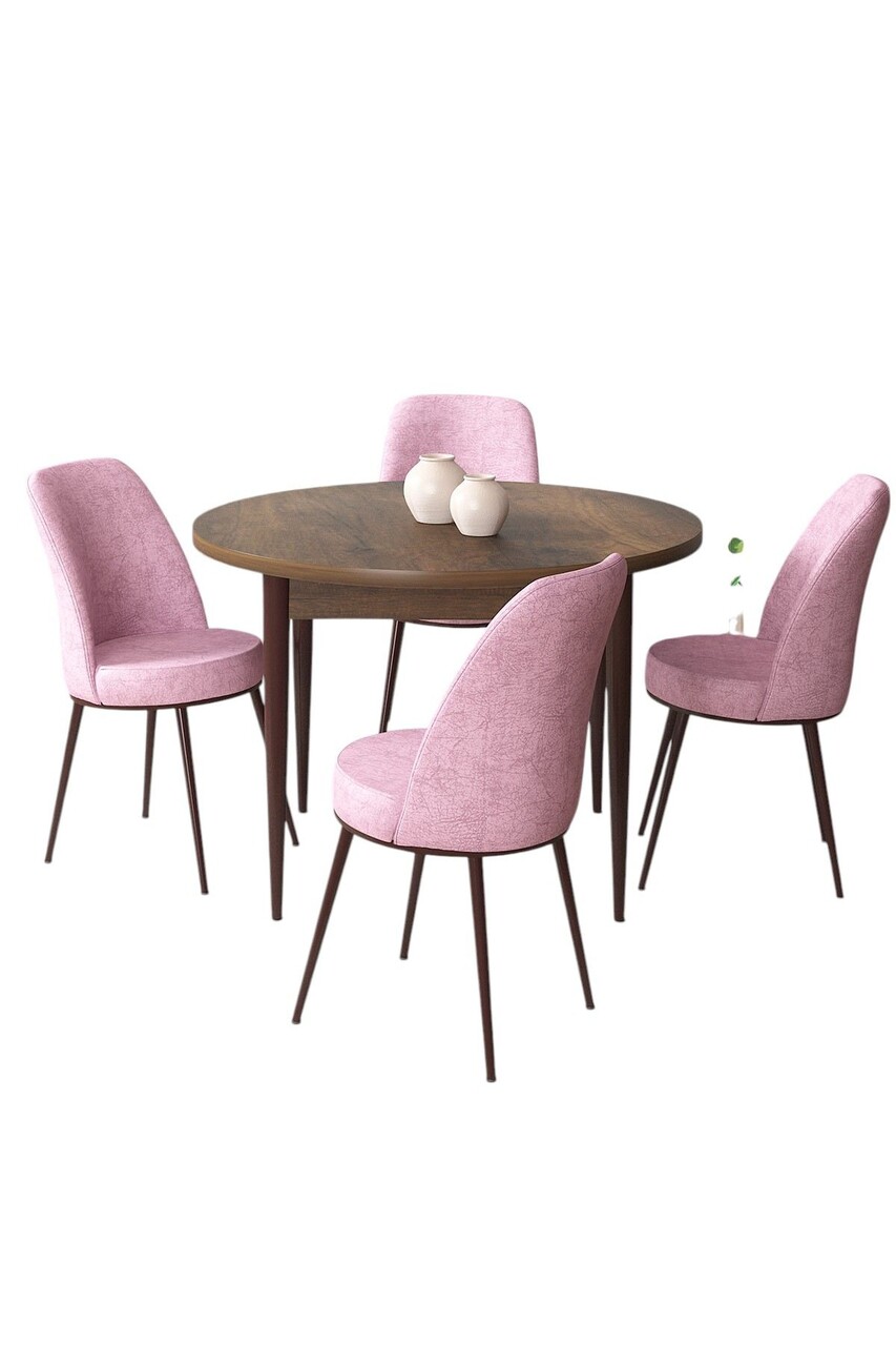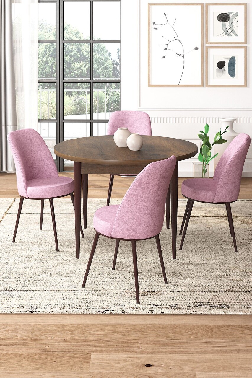 Set masă și scaune (5 bucăți), Hanah Home, Tor, Baroc / Roz