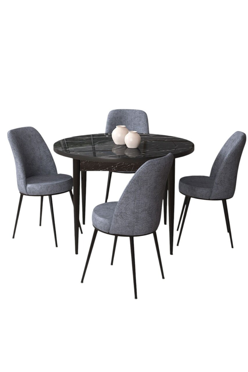 Set masă și scaune (5 bucăți), Hanah Home, Tor, Marmură neagră / Fumure
