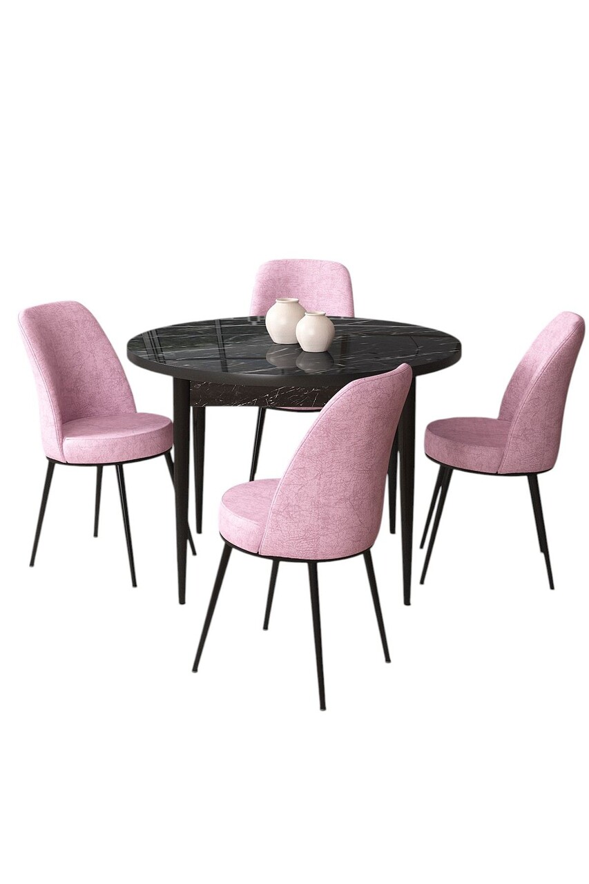 Set masă și scaune (5 bucăți), Hanah Home, Tor, Marmură neagră / Roz