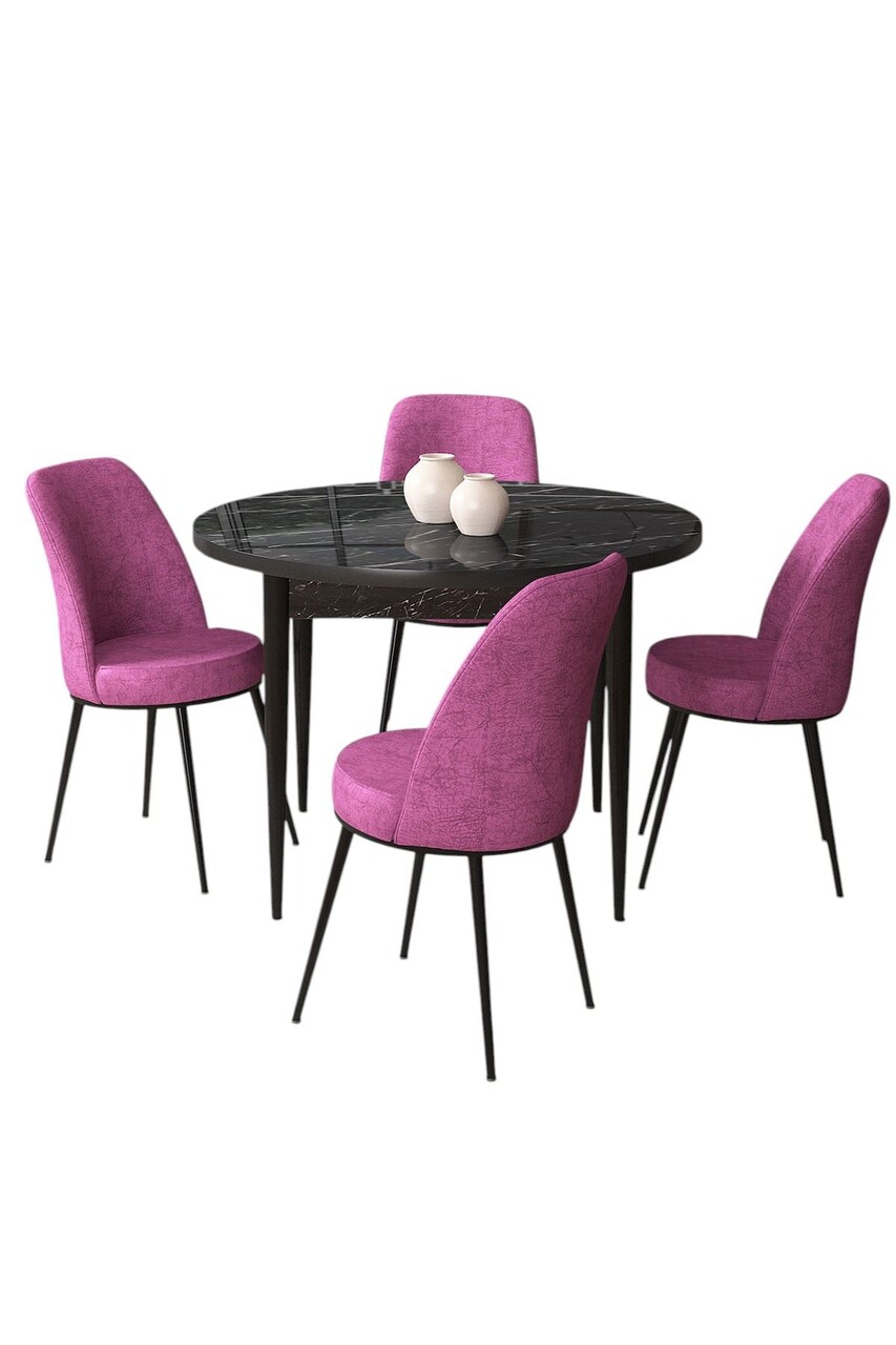 Set masă și scaune (5 bucăți), Hanah Home, Tor, Marmură neagră / Violet