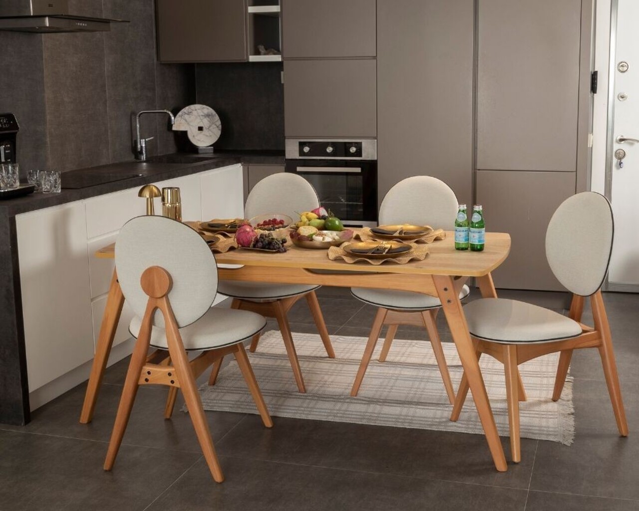 Set masa si scaune, 5 piese, Hanah Home, Touch (4S), Lemn, Stejar / Bej