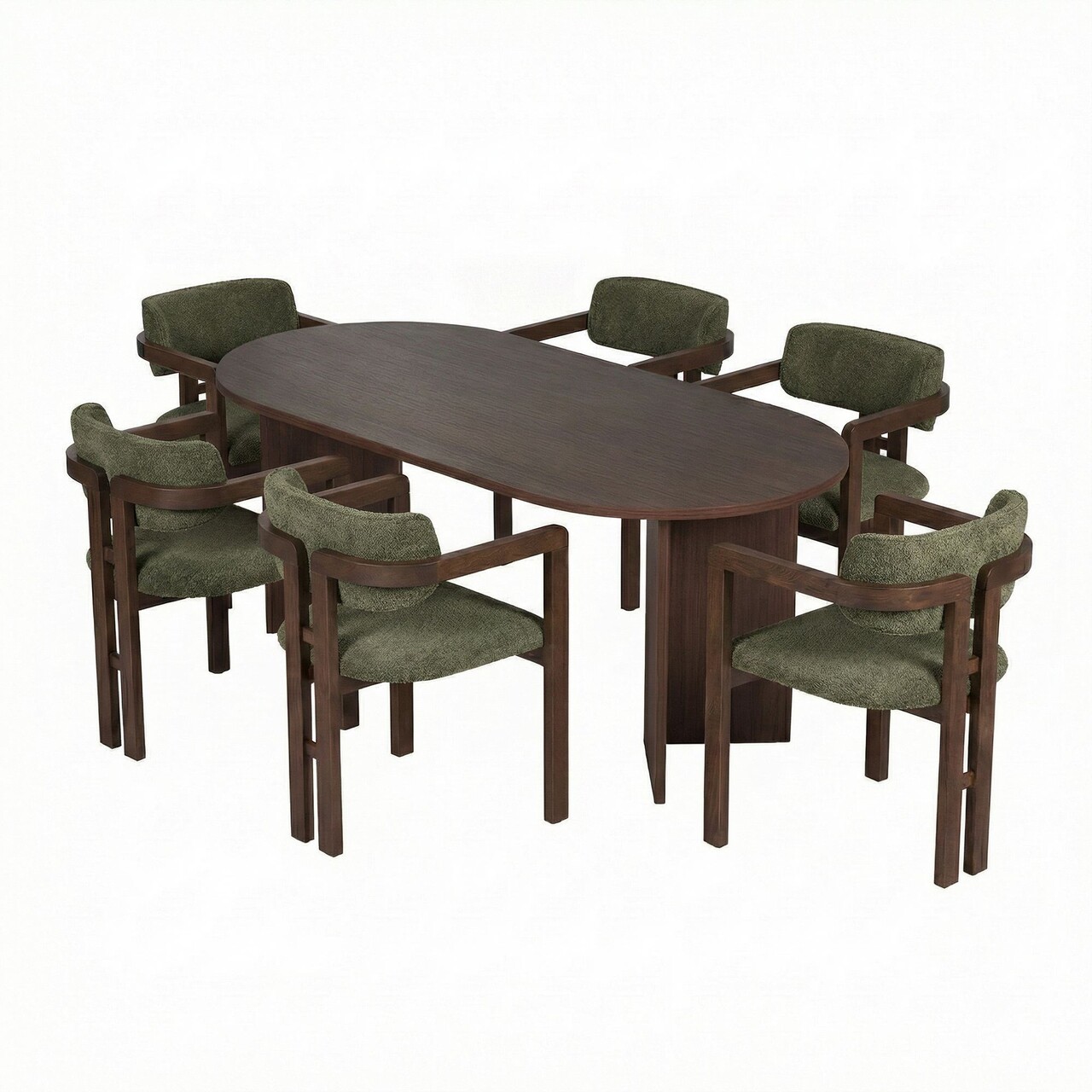 Set masă și scaune (7 piese), Hanah Home, Meridia 6, Nuc Milano / Nuc Închis / Verde