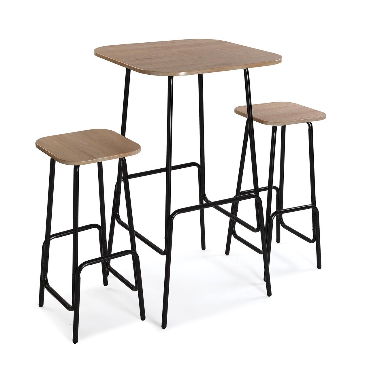 Set masa si scaune de bar 3 piese Braxton Dark, Versa, 60 x 60 x 102 cm, metal/MDF