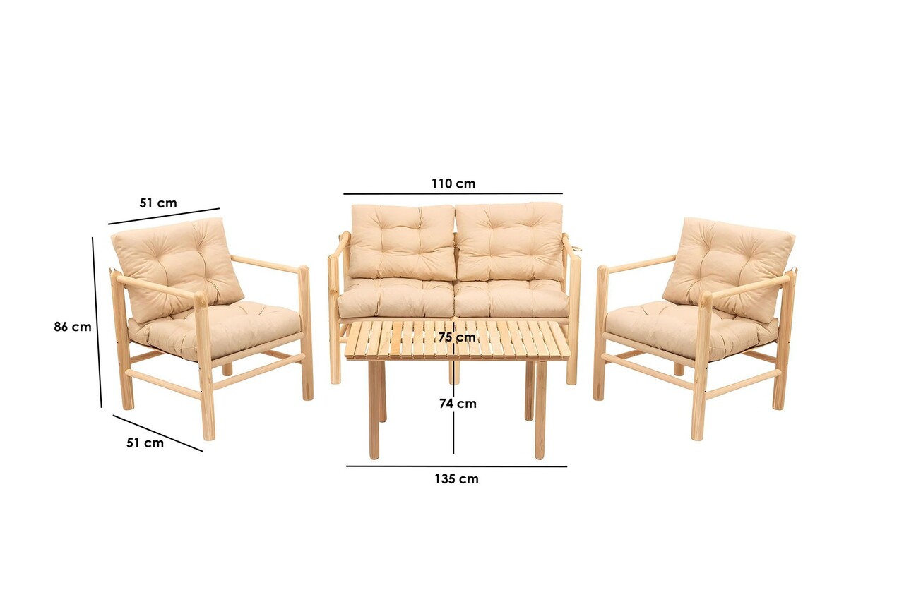 Set masa si scaune de gradina 4 piese, Hanah Home, My028, Natural / Crema