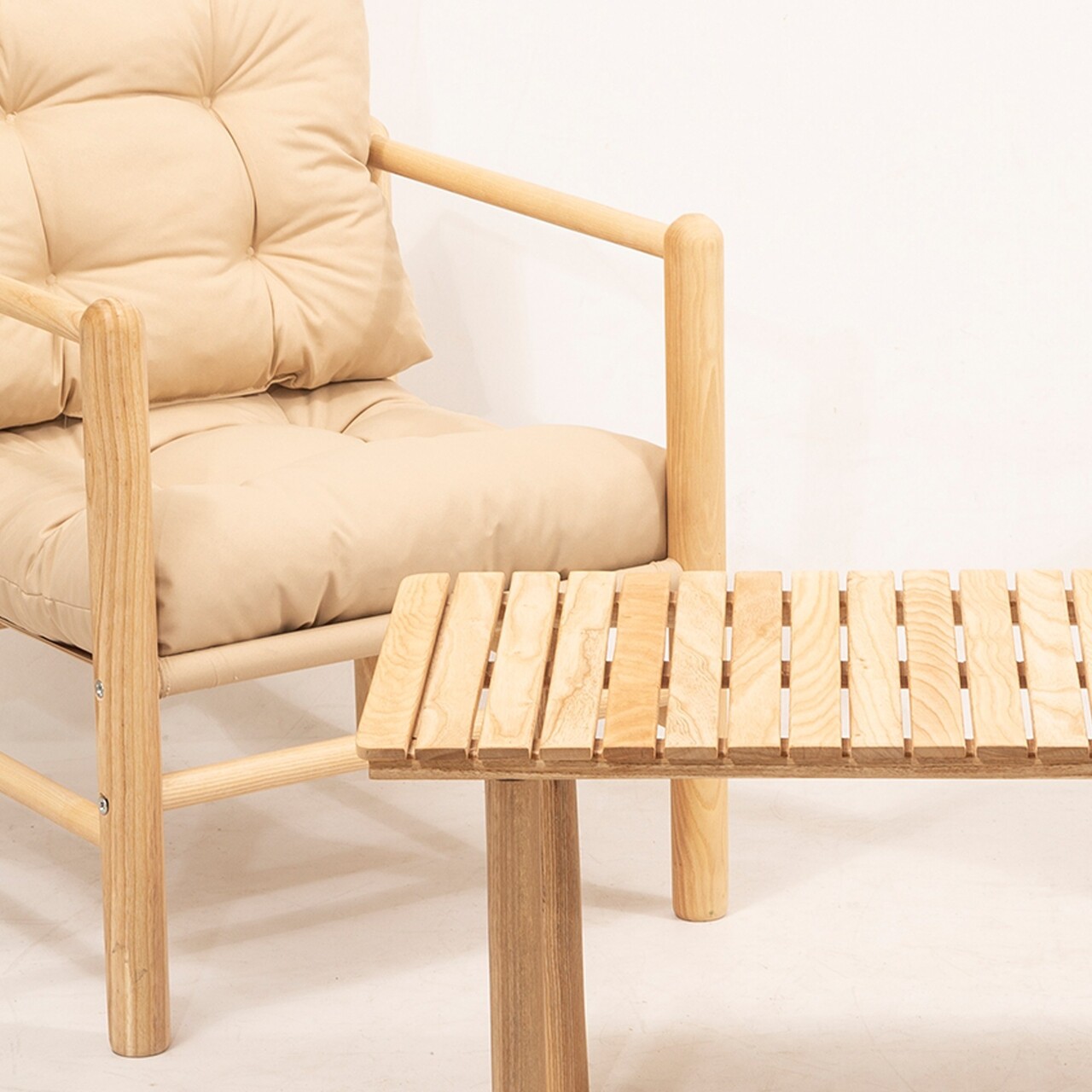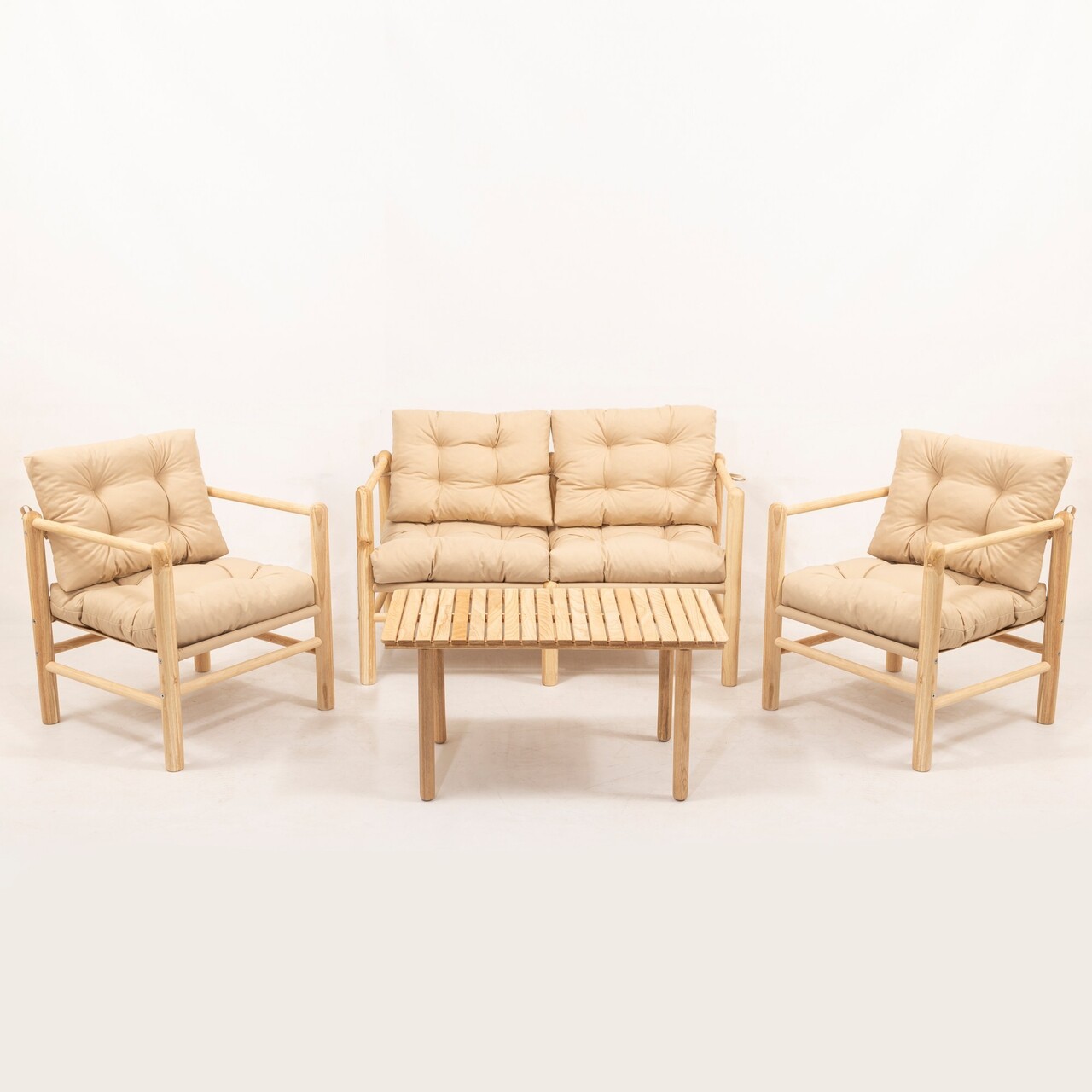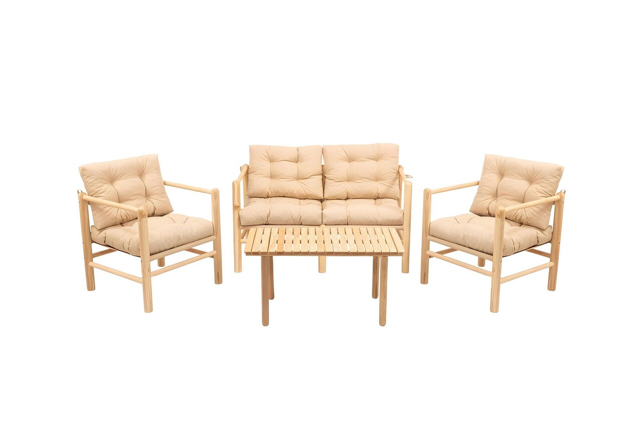 Set masa si scaune de gradina 4 piese, Meya Dekor, My028, Lemn, Natural / Crema