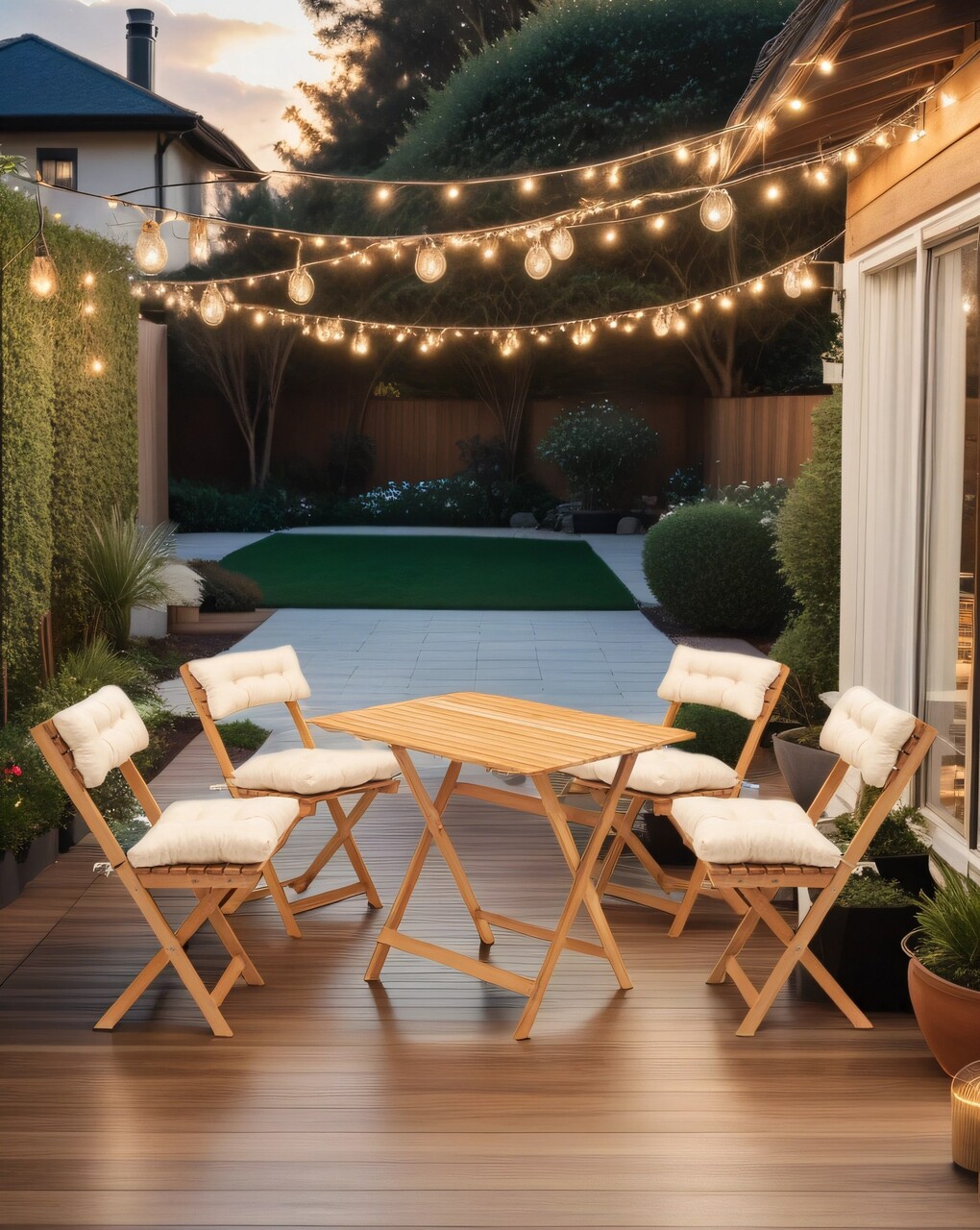 Set masa si scaune de gradina 5 piese, Meya Dekor, My004A, Lemn de fag, Natural / Crema