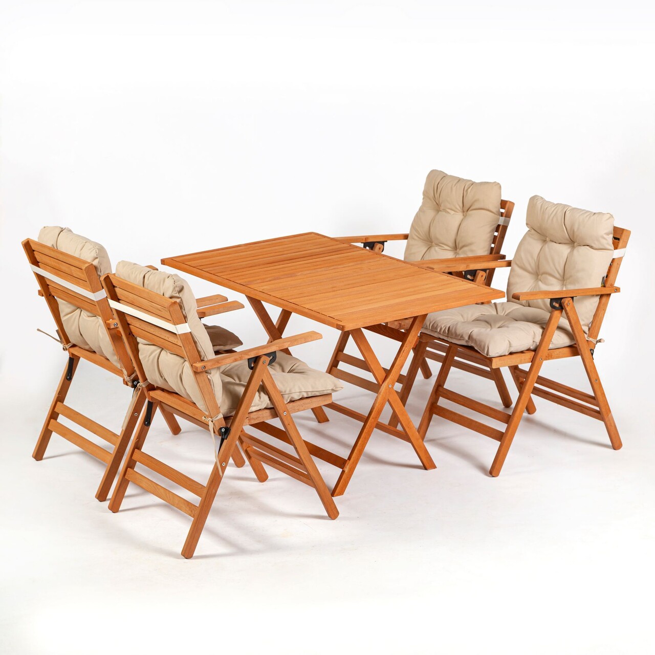 Set masa si scaune de gradina 5 piese, Meya Dekor, My009 V2, Lemn de fag, Natural / Crema