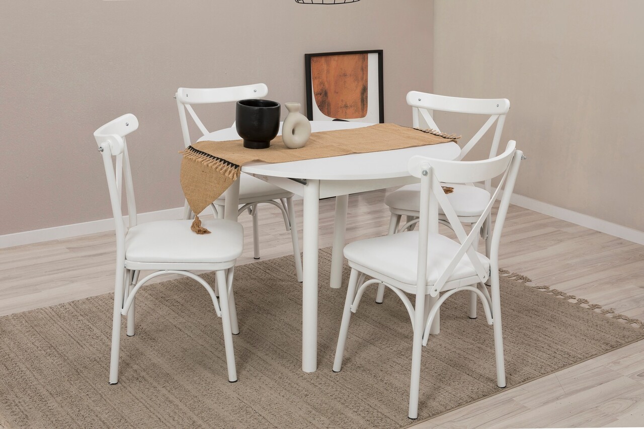 Set masă și scaune extensibile, Vella, Oliver, PAL, Alb