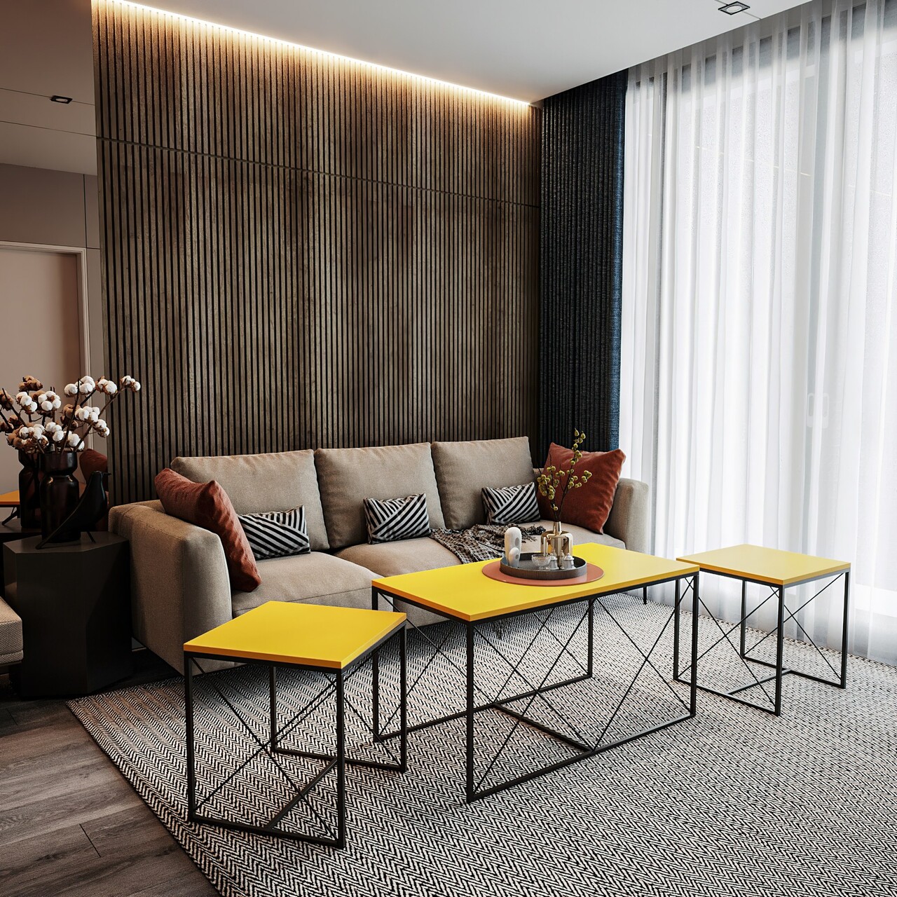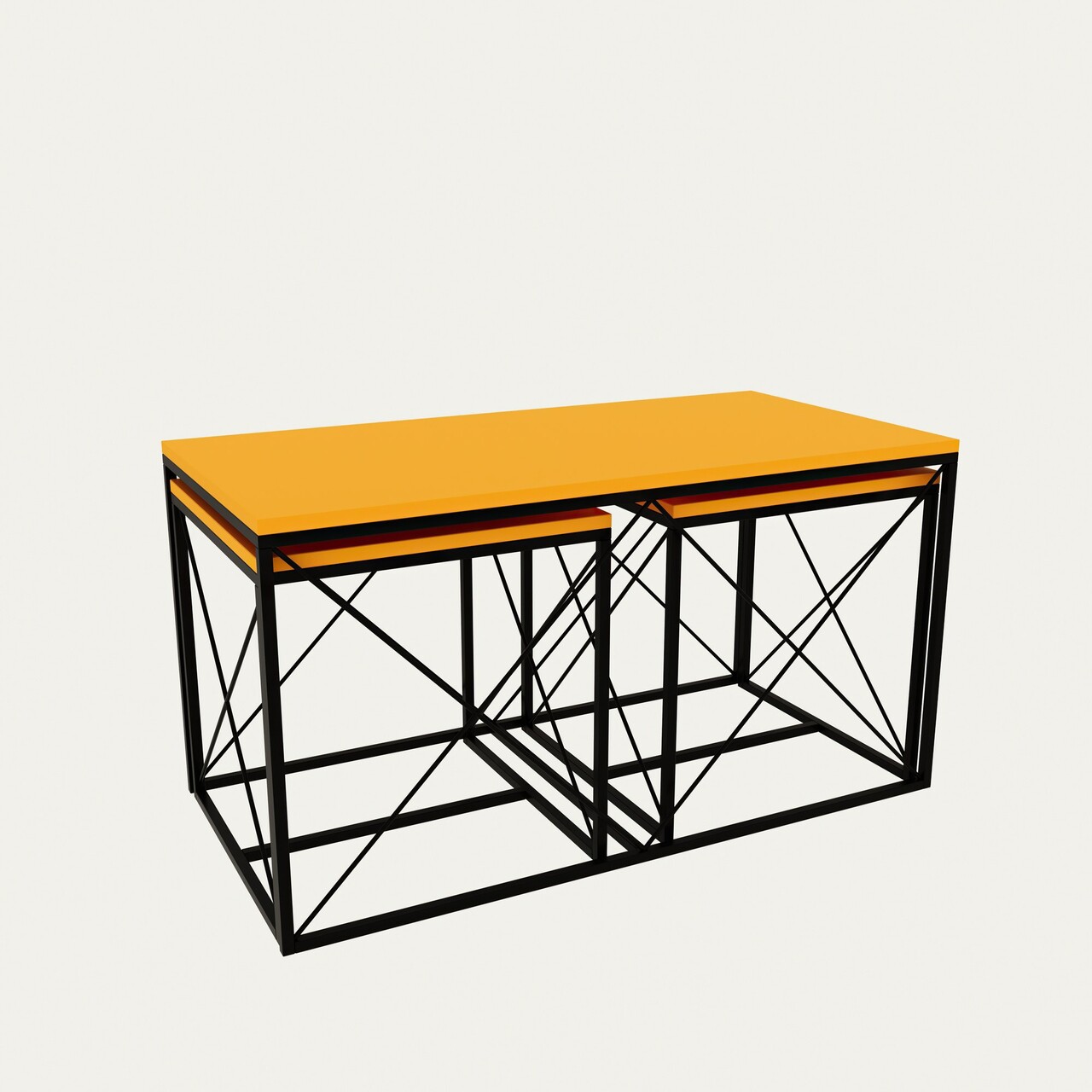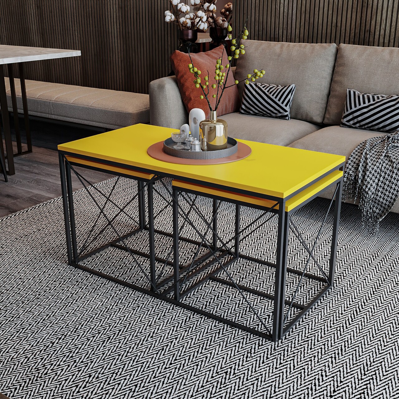 Set masuta de cafea, Kalune Design, Defne, PAL, Galben/Negru