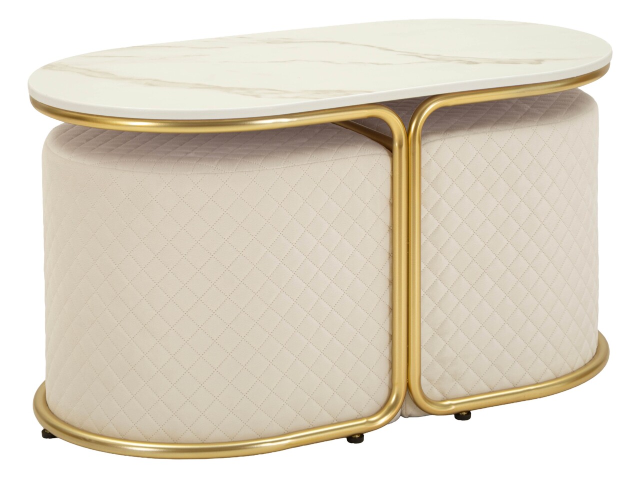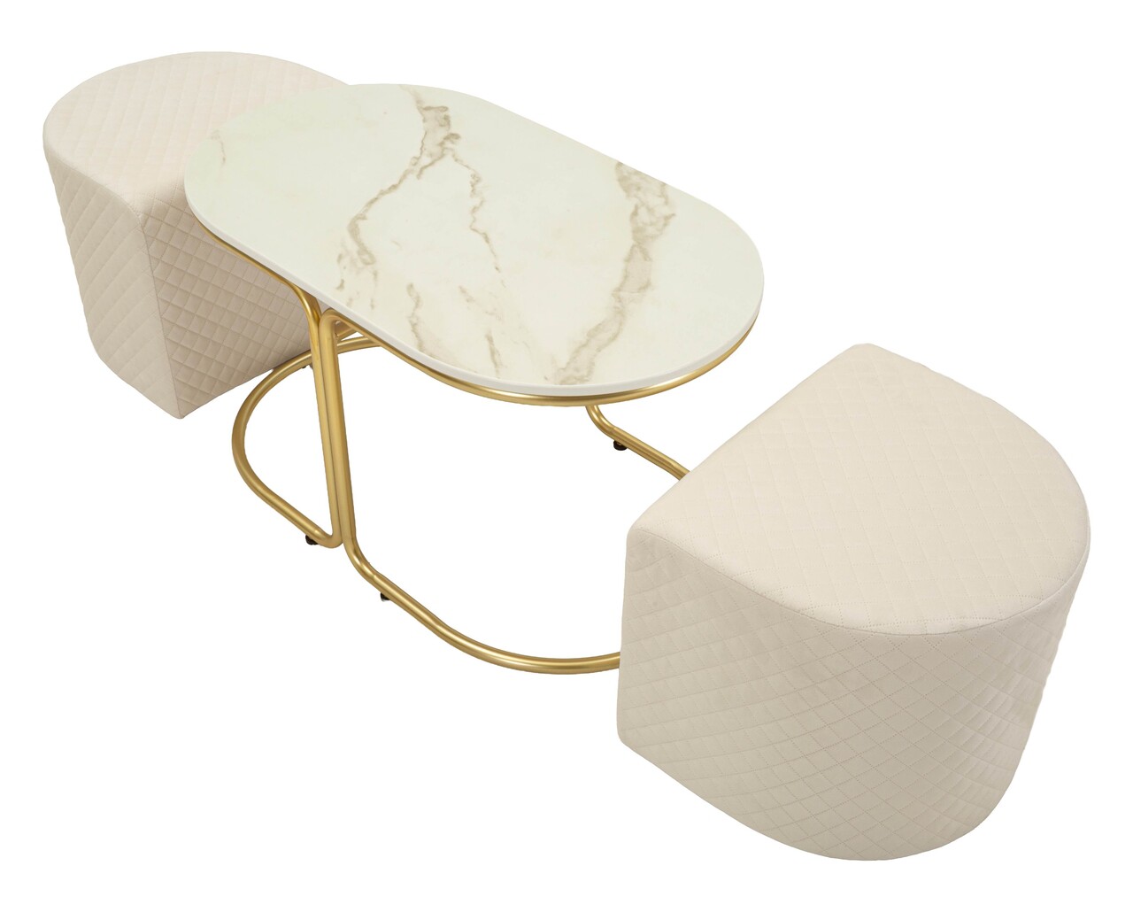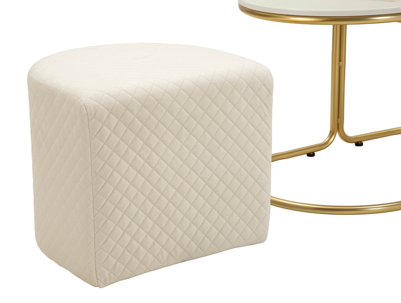 Set masuta de cafea si 2 taburete, Mauro Ferretti, Relax, 79x45x44 cm, lemn de pin/poliester, alb/auriu