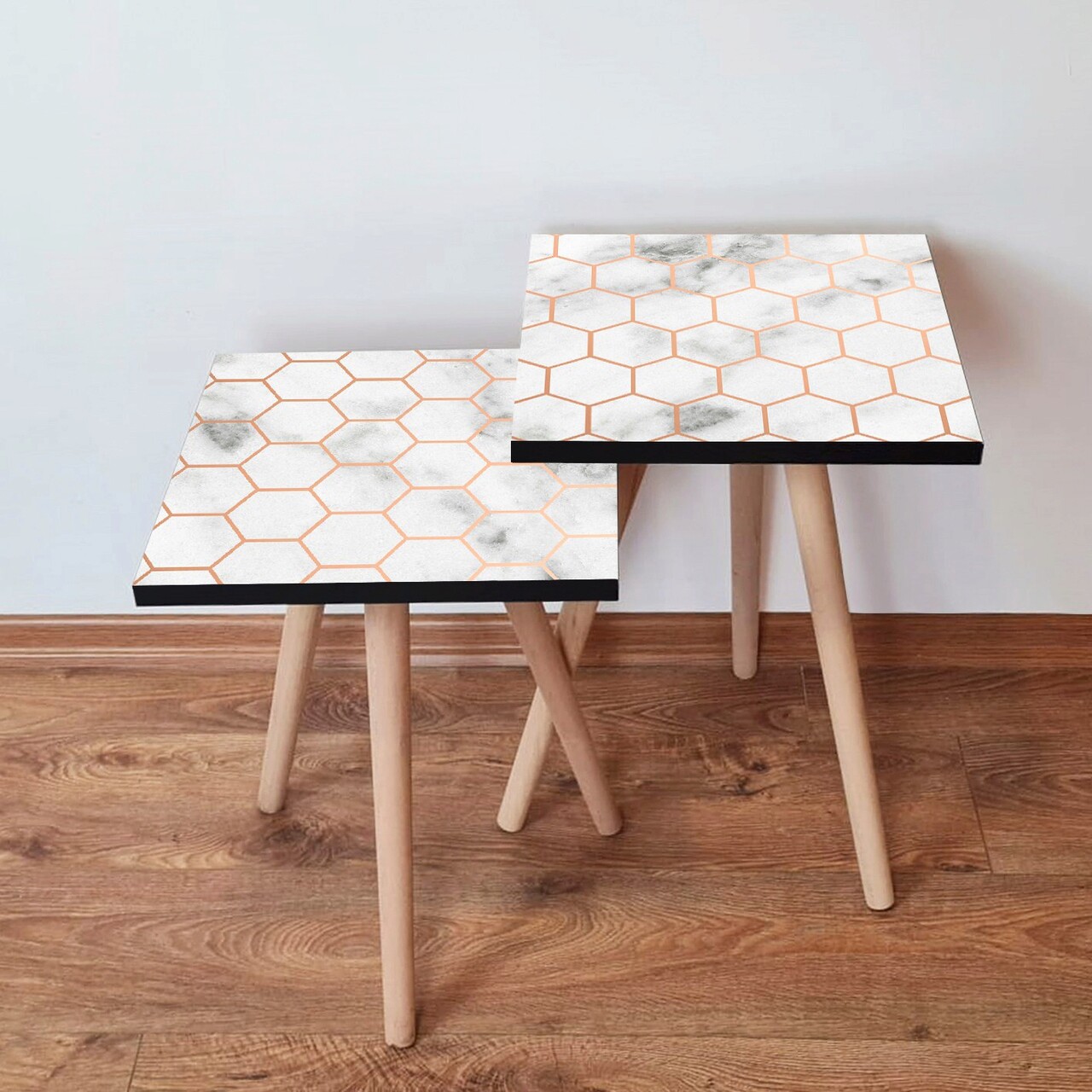 Set masute 2 piese, Hanah Home, 2Shp1, Alb/Auriu