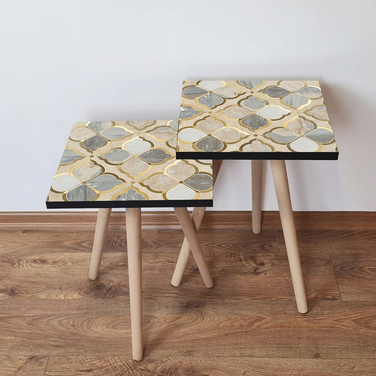 Set masute 2 piese, Hanah Home, 2Shp136, Gri / Auriu / Bej / Alb