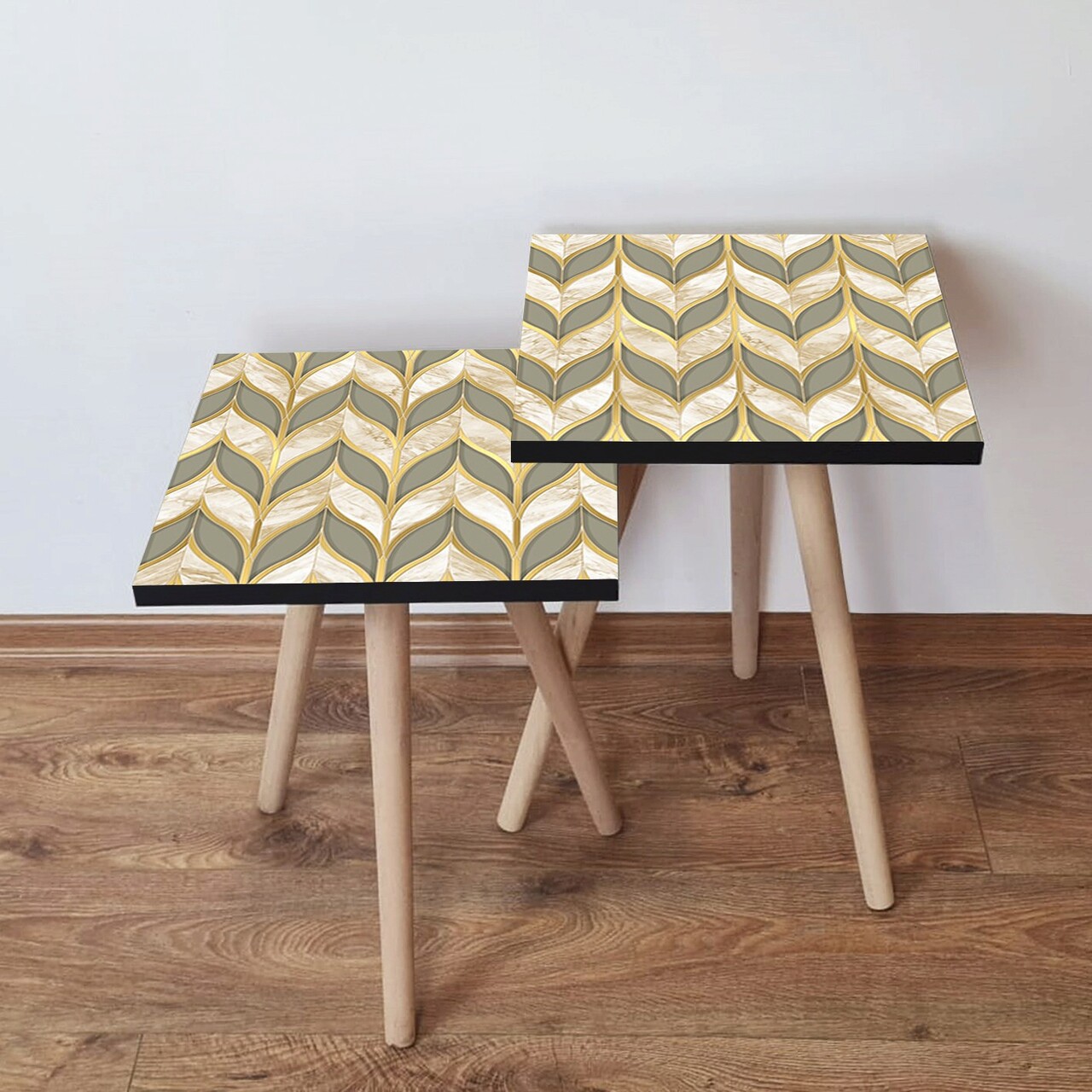 Set masute 2 piese, Hanah Home, 2Shp137, Gri / Auriu / Bej / Alb