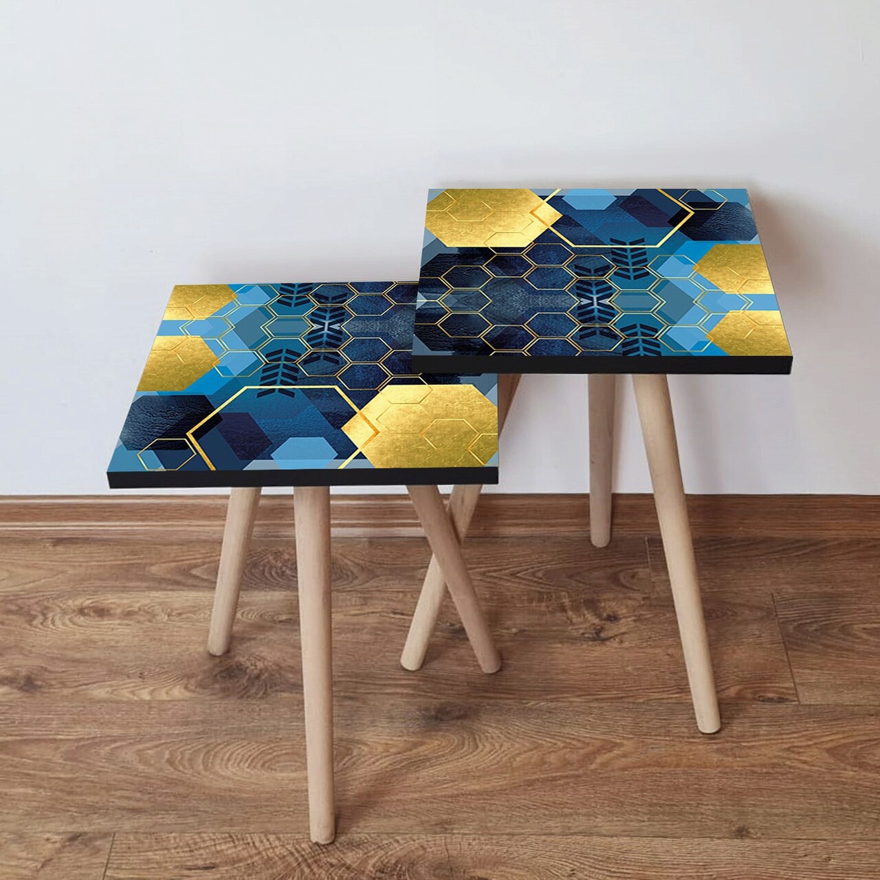Set masute 2 piese, Hanah Home, 2Shp160, Albastru / Bleumarin / Auriu