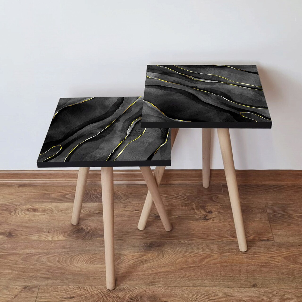 Set masute 2 piese, Hanah Home, 2Shp164, Negru / Galben / Alb