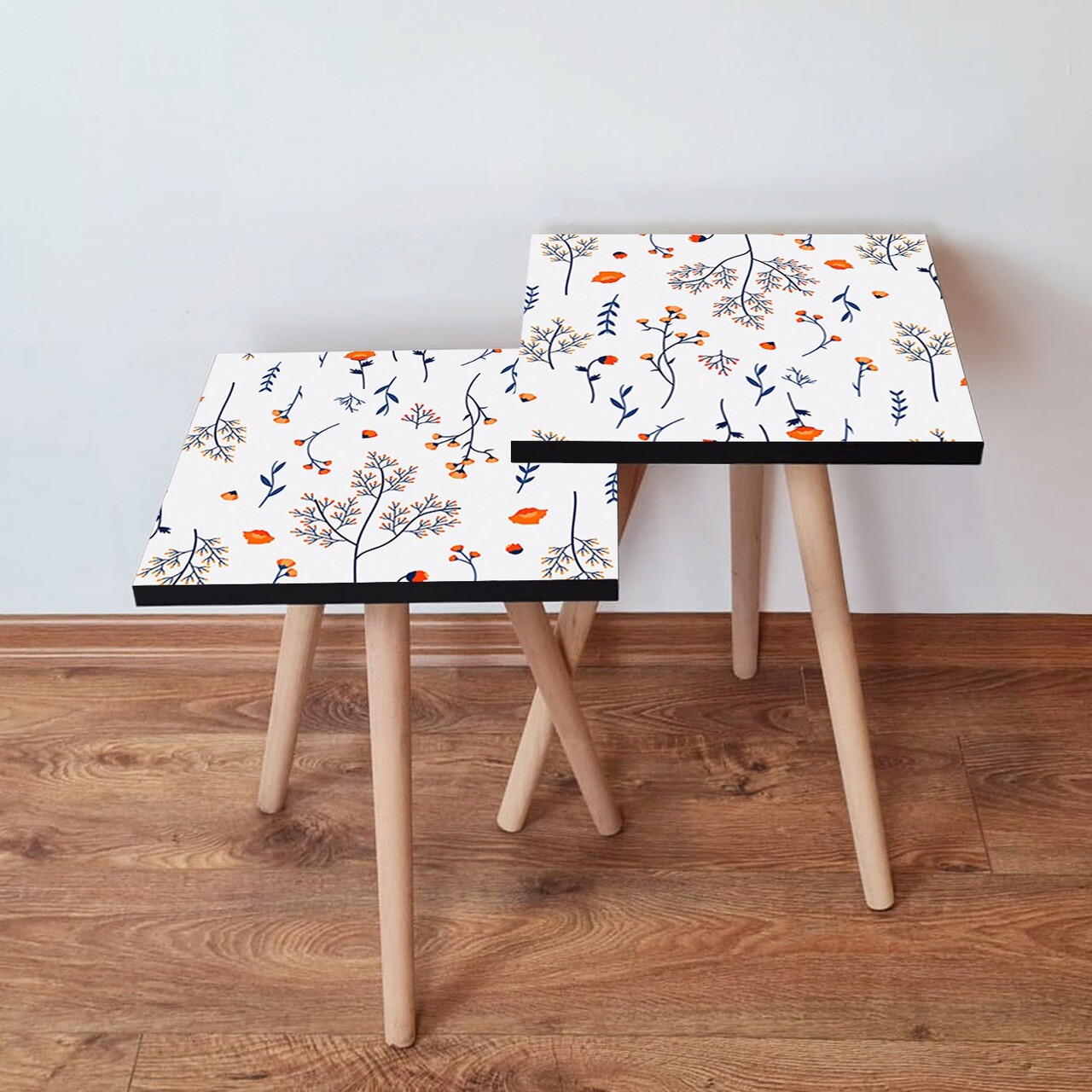 Set masute 2 piese, Hanah Home, 2Shp172, Alb / Bleumarin / Portocaliu