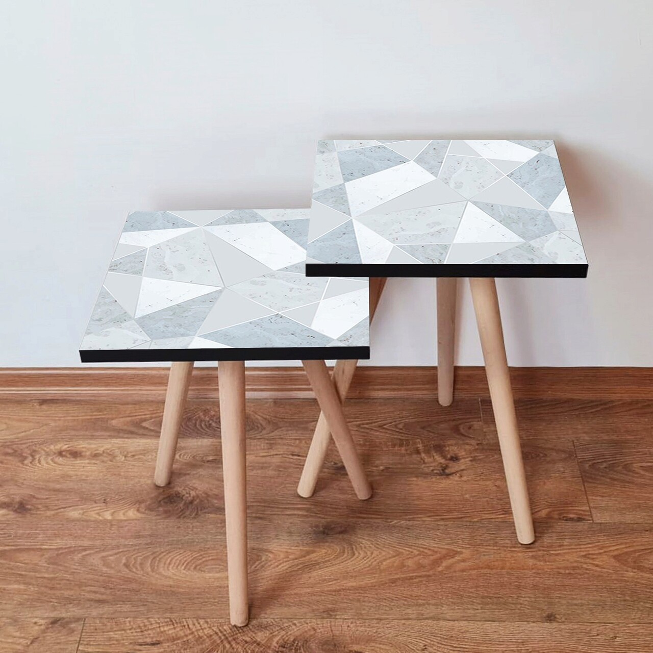 Set masute 2 piese, Hanah Home, 2Shp175, Albastru deschis / Alb / Gri