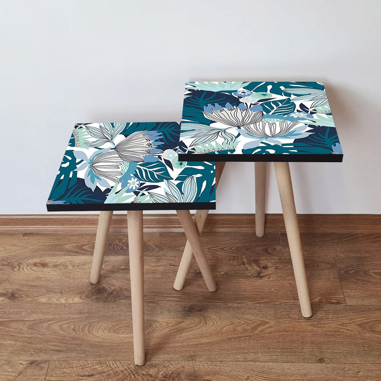 Set masute 2 piese, Hanah Home, 2Shp210, Bleumarin / Albastru / Negru / Alb