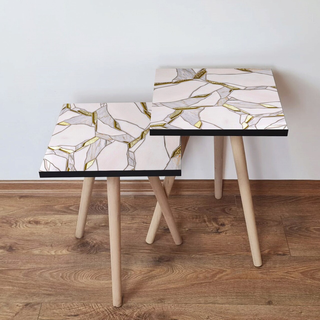 Set masute 2 piese, Hanah Home, 2Shp272, Alb / Gri / Auriu