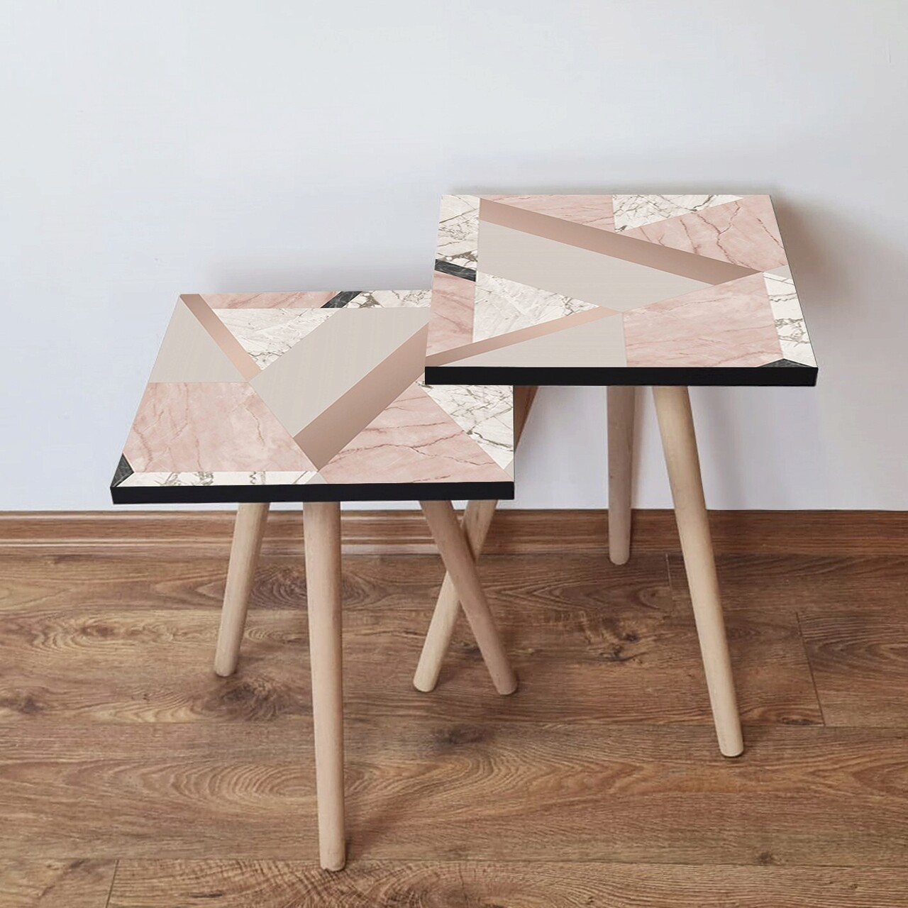 Set masute 2 piese, Hanah Home, 2Shp320, Roz / Bej / Alb / Negru