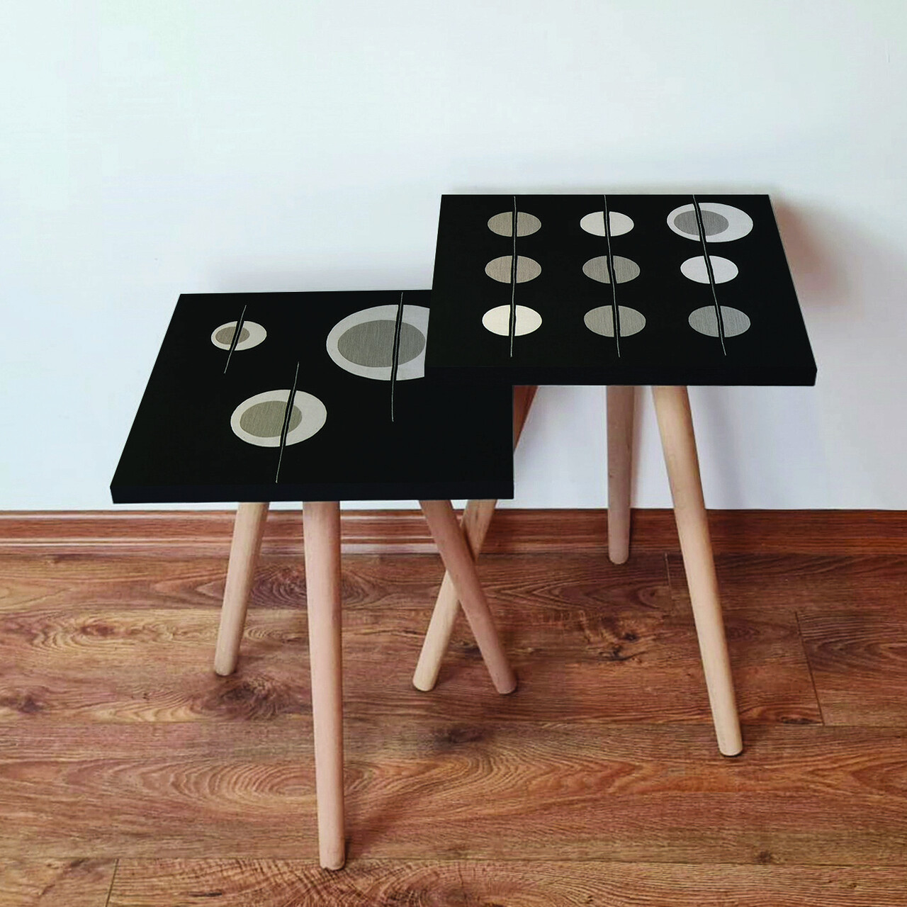 Set masute 2 piese, Hanah Home, 2Shp413, Negru / Bej / Gri