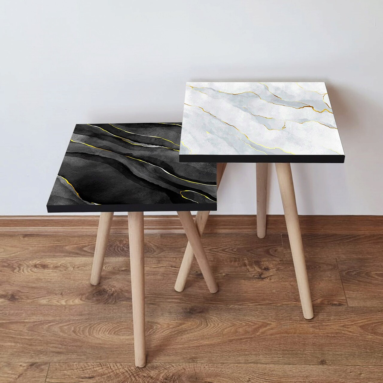 Set masute 2 piese, Hanah Home, 2Shp440, Negru / Alb / Auriu