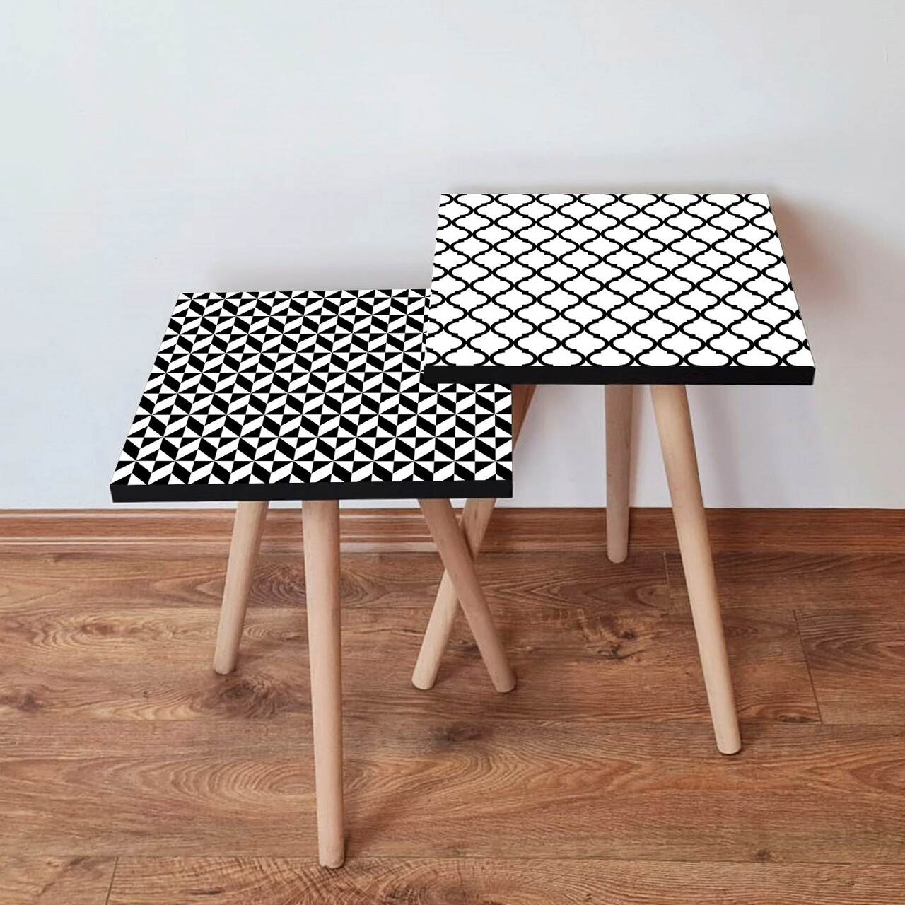 Set masute 2 piese, Hanah Home, 2Shp447, Alb/Negru