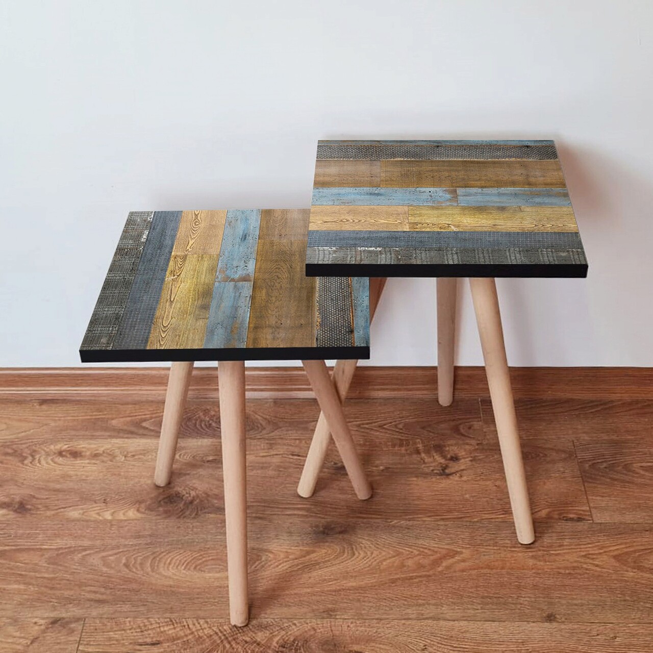 Set masute 2 piese, Leona, 2Shp2, MDF , Maro / Gri / Camel / Albastru