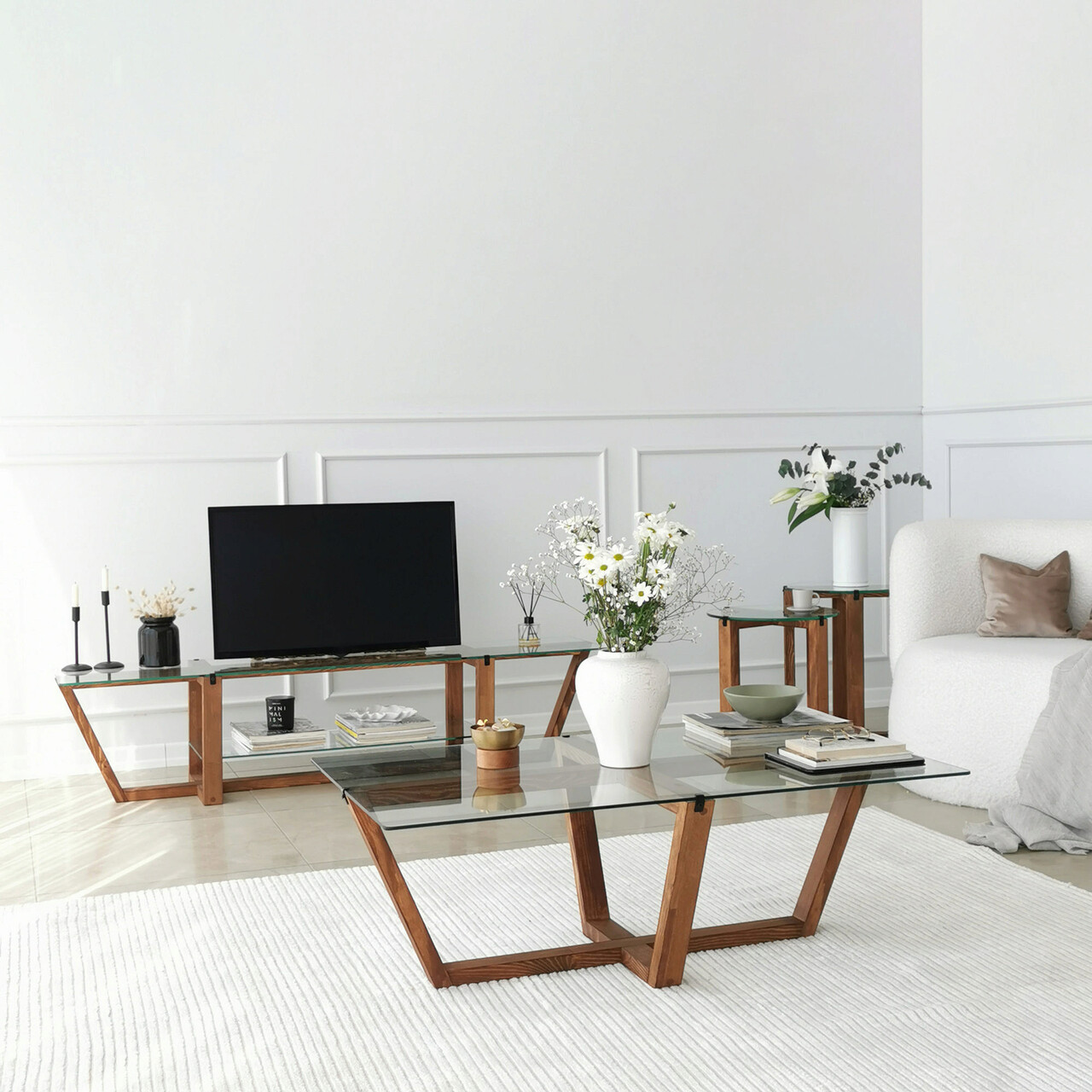 Set masute 2 piese, Neostill, Amalfi, Sticla temperata , Maro
