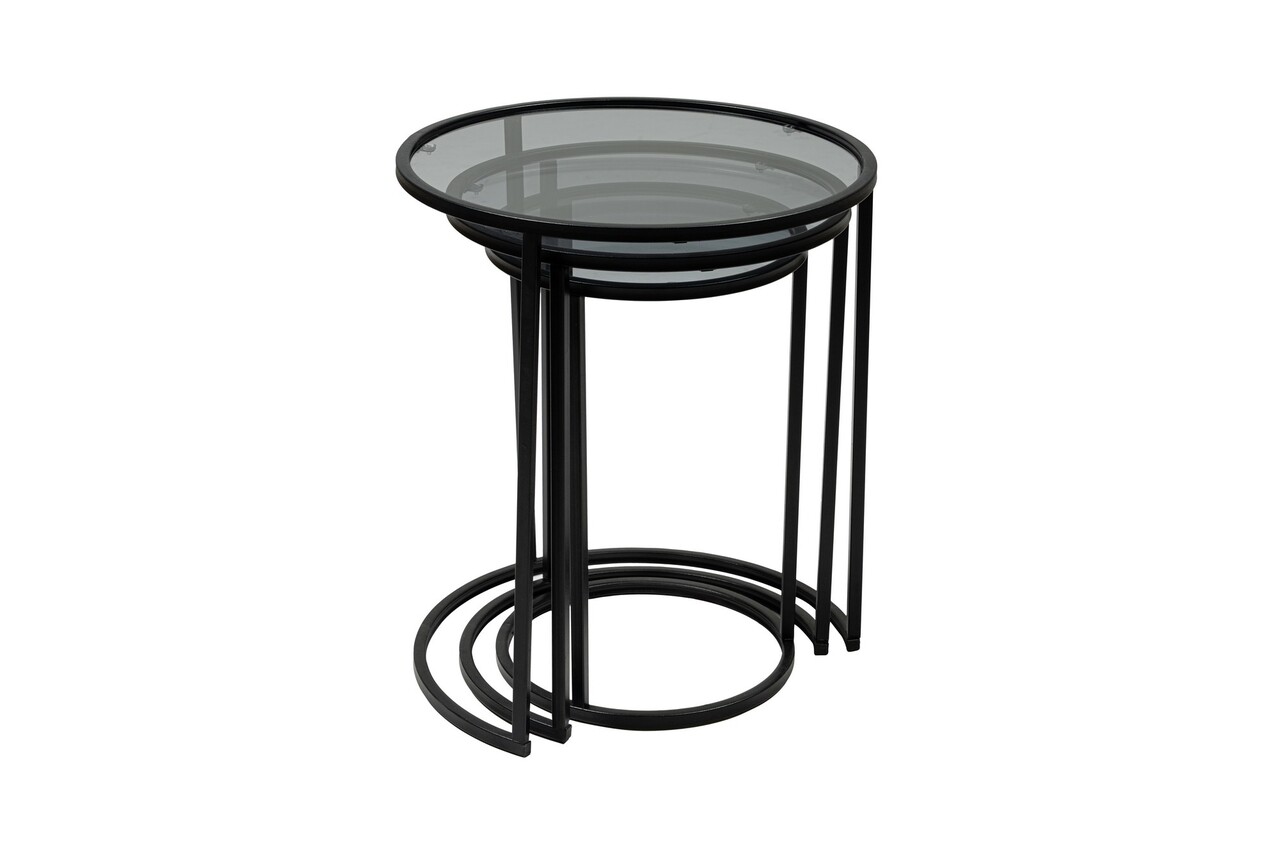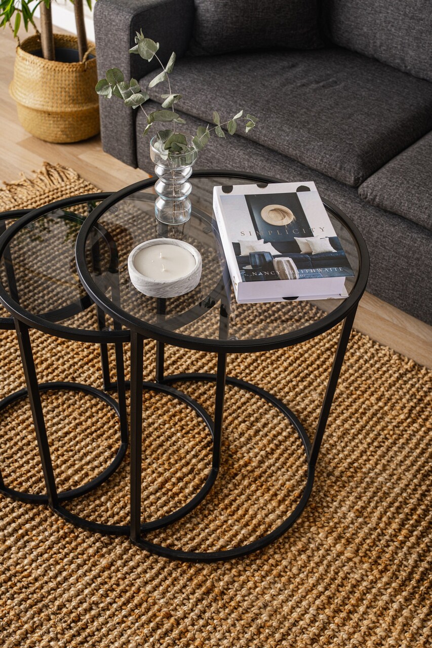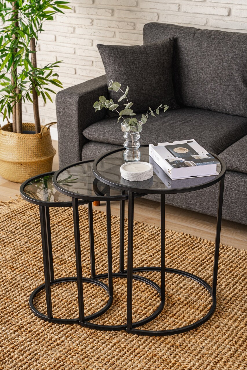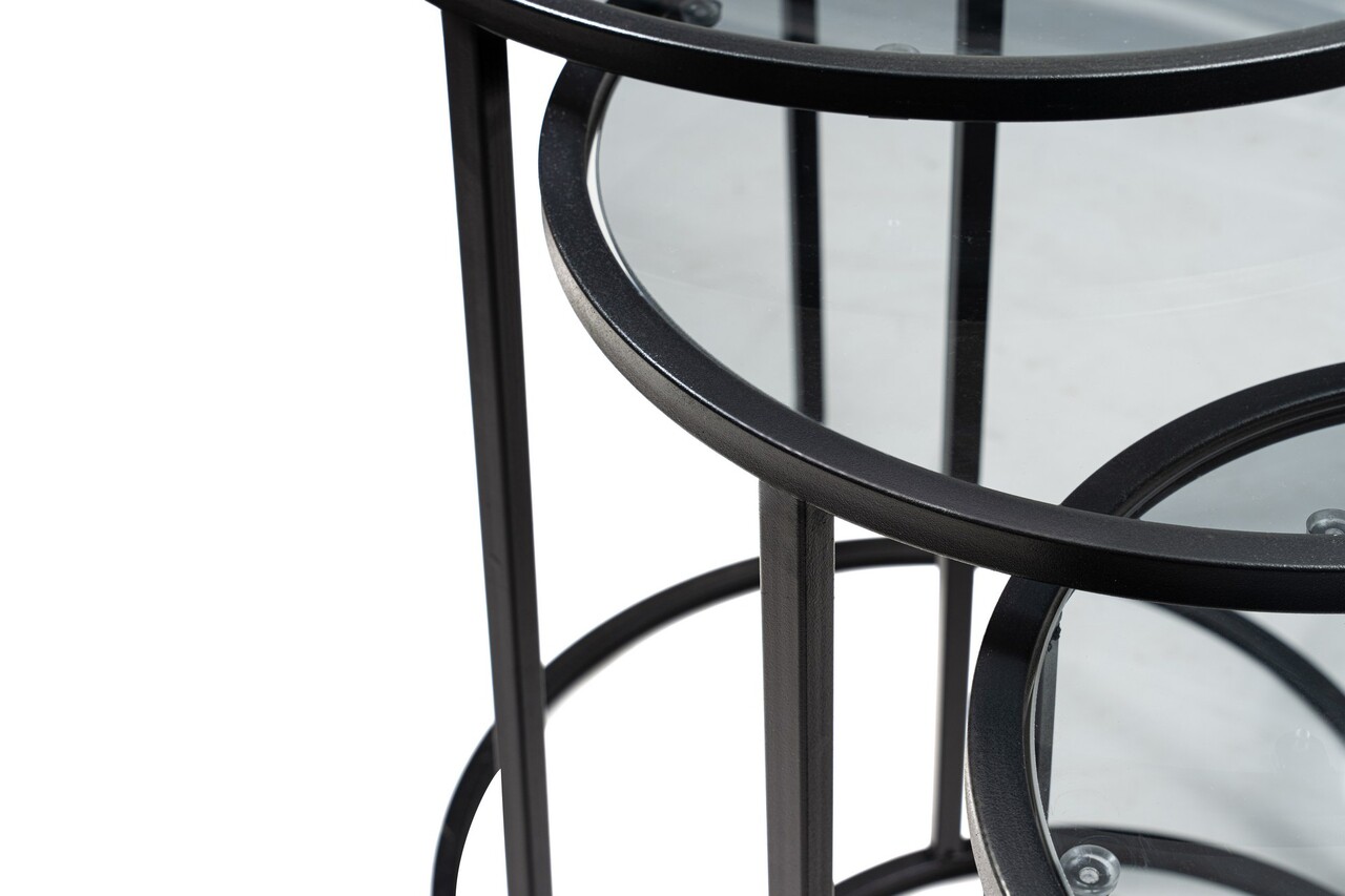 Set masute 3 piese, Caliente, Alya, Sticla temperata, Negru
